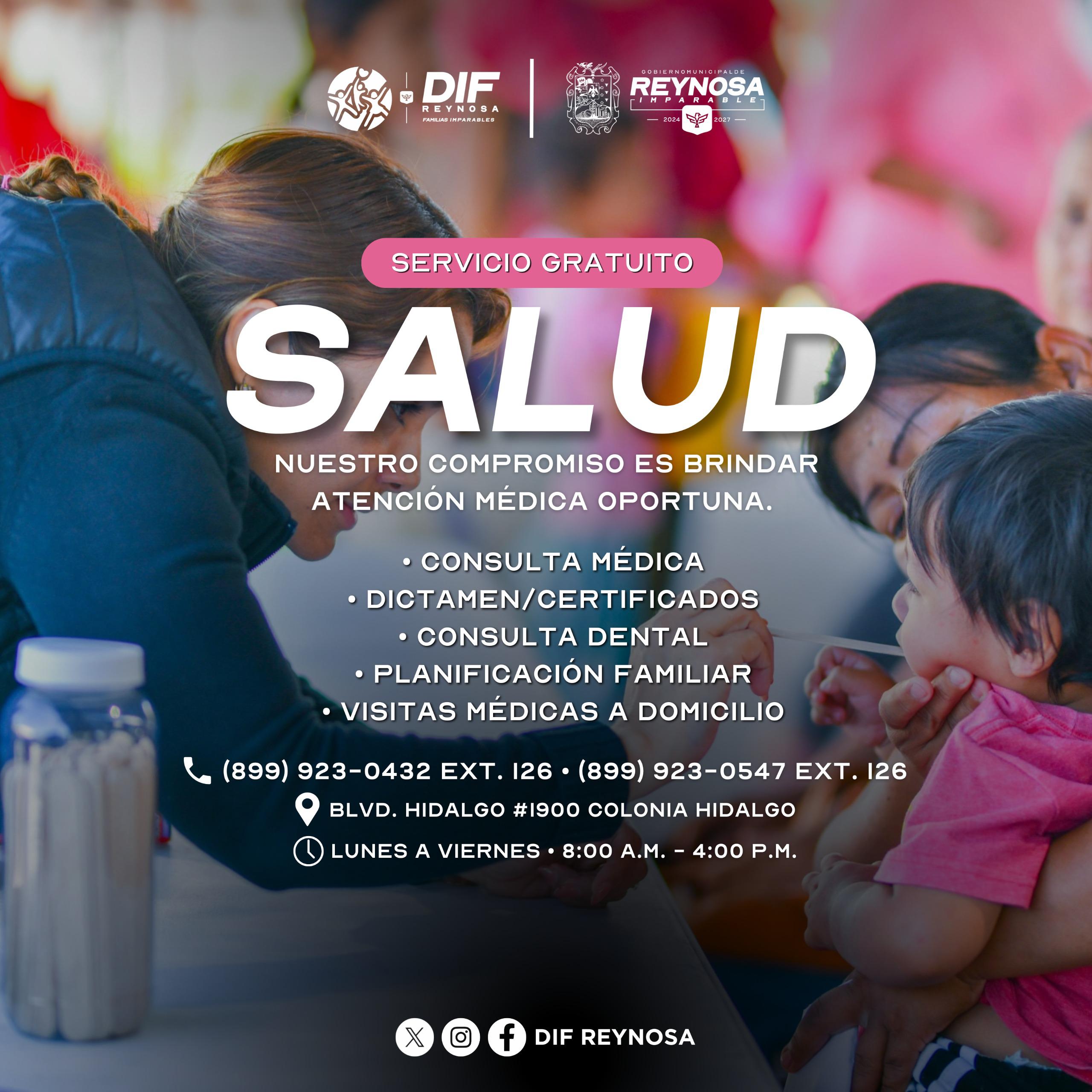 El Sistema DIF-Reynosa que preside Carlos Luis Peña Garza, continúa fortaleciendo sus acciones en materia de salud, al ofrecer servicios médicos gratuitos para toda la población que lo requiera.