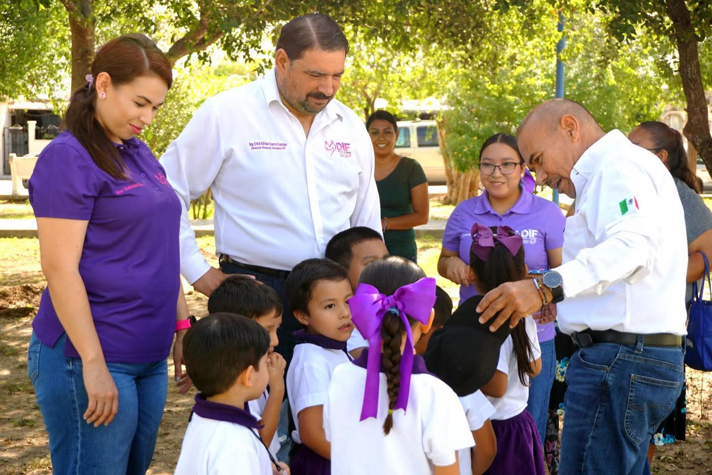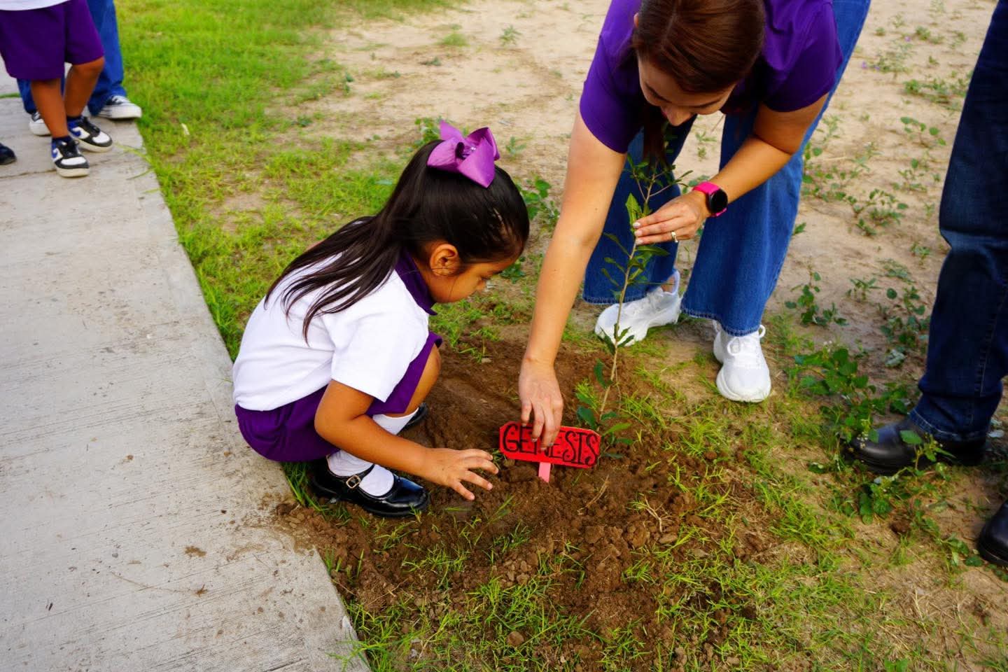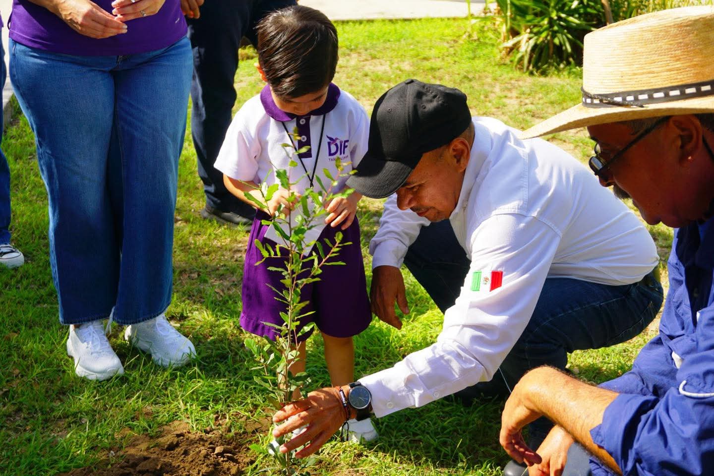 MIGUEL ALEMÁN, TAM. – Impulsando en las nuevas generaciones la cultura del cuidado del medio ambiente a través de la Campaña Permanente de Reforestación, el Alcalde Biol. Ramiro Cortez Barrera sembró más árboles en la plaza de la colonia Infonavit Industrial, acompañando a los niños del Centro de Atención Infantil Comunitario (CAIC) del poblado Los Guerra.