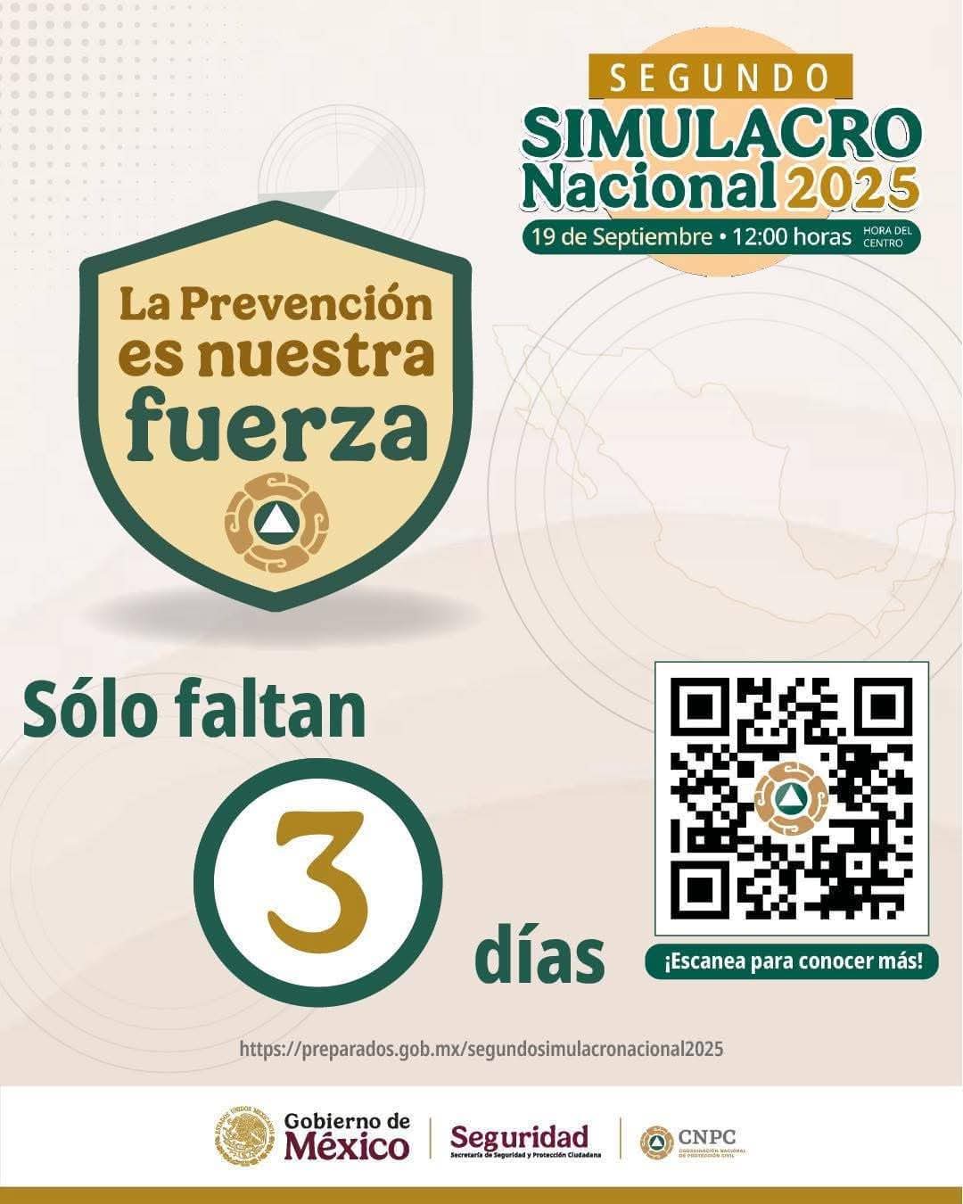 DÍAZ ORDAZ, TAM. – El titular de Protección Civil y Bomberos, Gerardo Falcón Uribe, informó que este viernes 19 de septiembre se realizará en todo el país el Segundo Simulacro Nacional 2025, en el que el municipio participará de manera activa bajo la coordinación del Gobierno Municipal encabezado por la Alcaldesa Nataly García Díaz.
