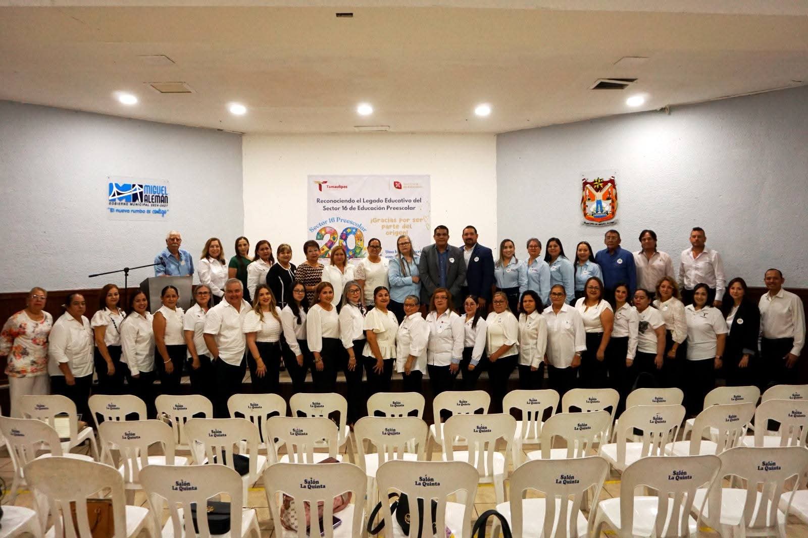 MIGUEL ALEMÁN, TAM. -En la celebración del 20 Aniversario del Sector 16 de Educación Preescolar, el Gobierno del Biol. Ramiro Cortez Barrera reiteró el reconocimiento a todas las educadoras que han contribuido en gran medida en la formación inicial de ciudadanos en esta región de Tamaulipas, sirviendo con pasión, entrega y esperanza.