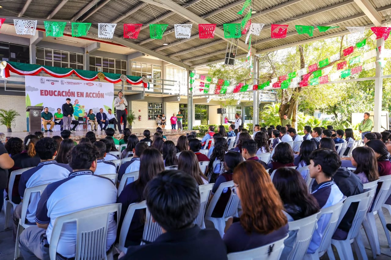 Mediante el programa «Educación en Acción», el Presidente Carlos Peña Ortiz dialogó con estudiantes del Centro de Estudios Tecnológicos Industrial y de Servicios, CETis número 71, que dirige la Maestra Martha Reyna Martínez, escuchando las inquietudes y propuestas de los jóvenes reynosenses que están tomando en sus manos el futuro de nuestra ciudad.