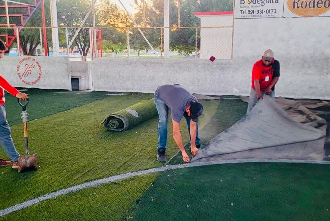 De acuerdo con la edil, las labores comenzaron con el levantamiento y retiro del pasto sintético existente, con el objetivo de sustituirlo por una nueva superficie que permita a los deportistas practicar en mejores condiciones.