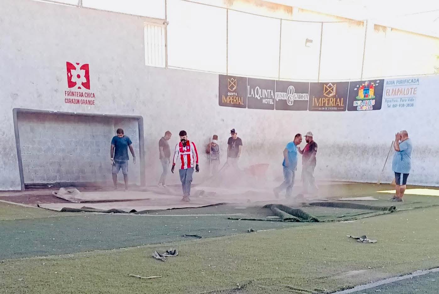De acuerdo con la edil, las labores comenzaron con el levantamiento y retiro del pasto sintético existente, con el objetivo de sustituirlo por una nueva superficie que permita a los deportistas practicar en mejores condiciones.
