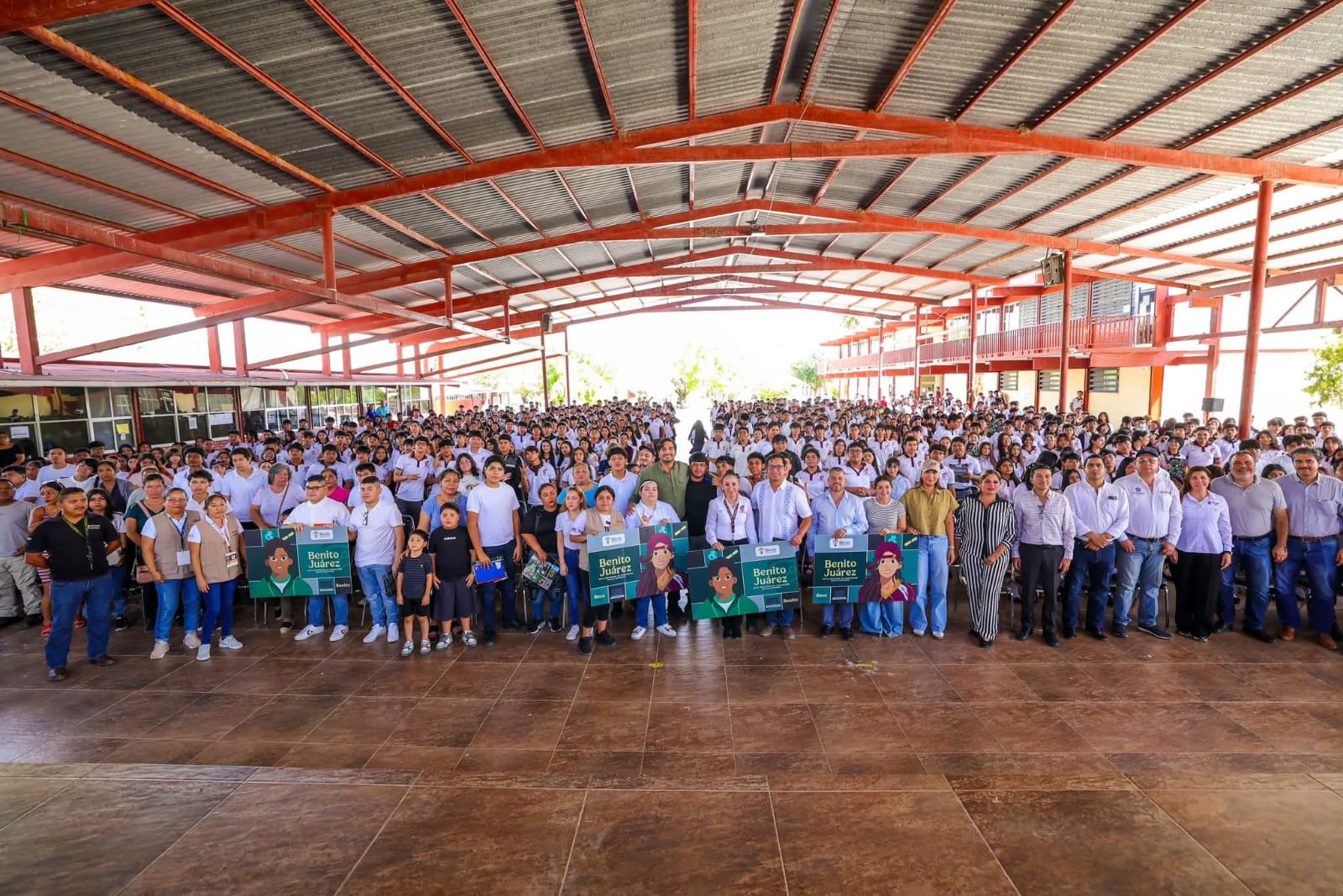 «Este apoyo se da gracias a los compromisos que hicimos los gobiernos de transformación, buscando que se quede atrás ese México donde a veces no alcanzaba para ir a la escuela», reafirmó el Presidente Municipal ante estudiantes de nivel Bachillerato.