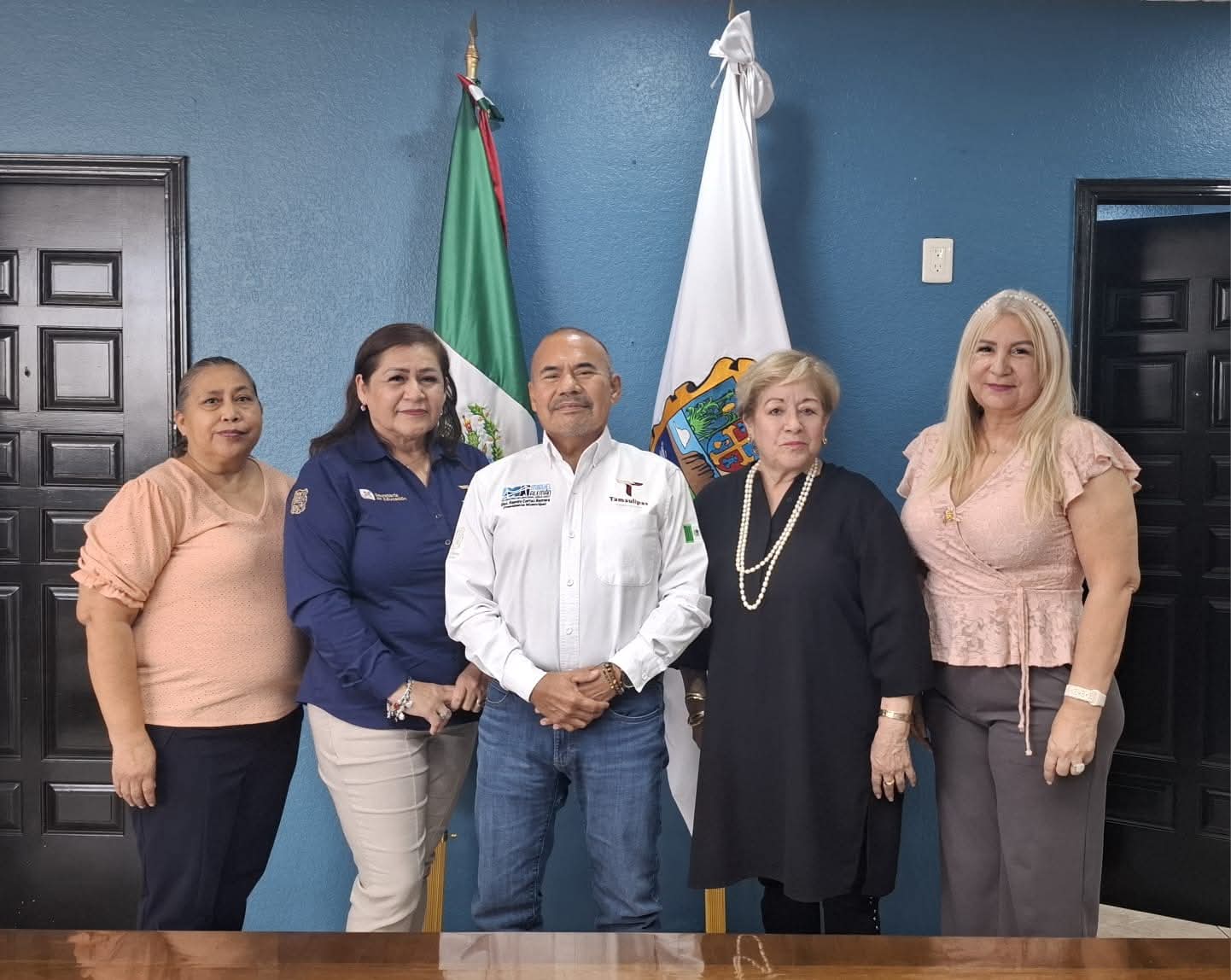 MIGUEL ALEMÁN, TAM. – El Presidente Municipal, Biólogo Ramiro Cortez Barrera, refrendó este miércoles su compromiso con la educación al recibir en su despacho a la nueva jefa del Sector 2 de Primarias, Mtra. Reyna Cruz Rodríguez Vega, quien acudió en compañía de representantes de las zonas escolares 50 y 124.