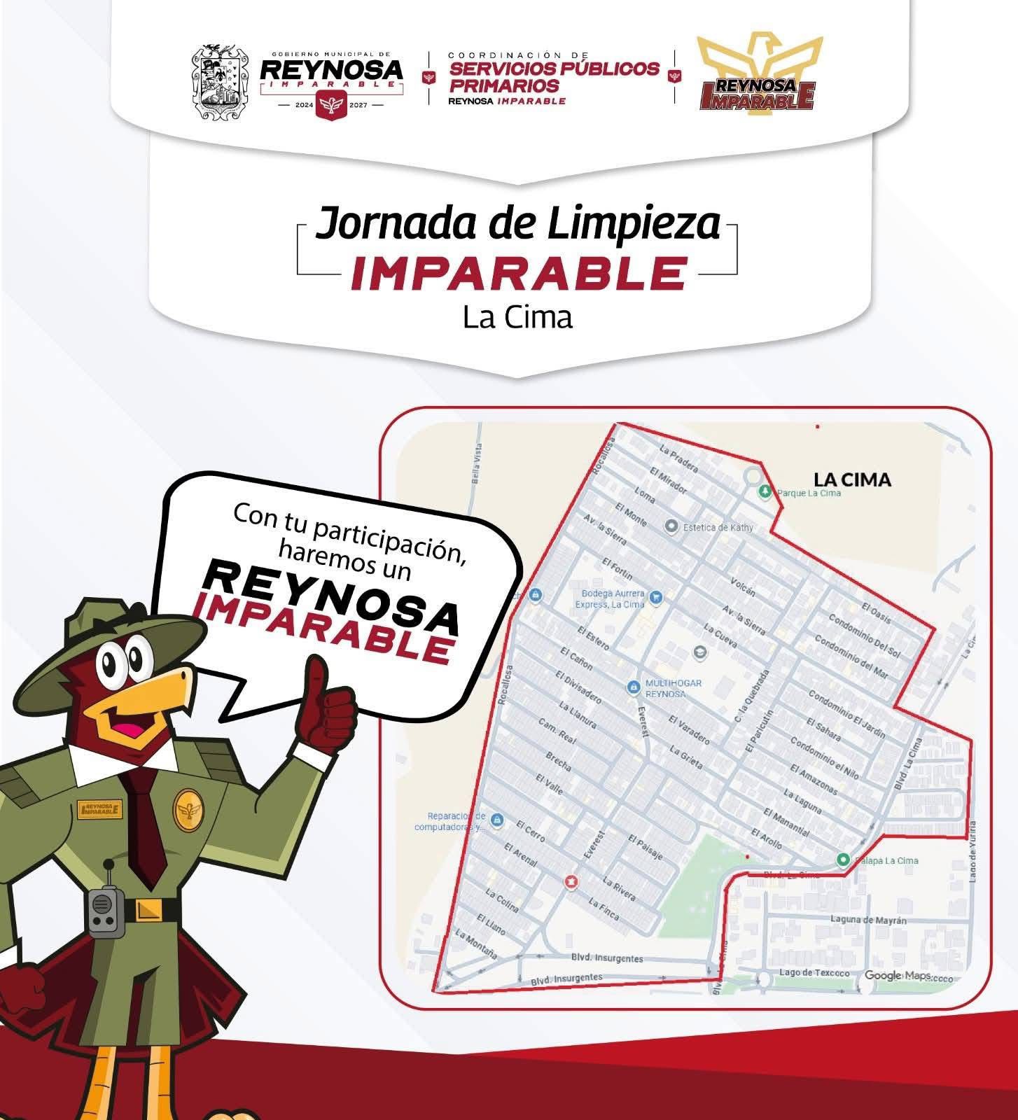 El Gobierno de #Reynosa que encabeza Carlos Peña Ortiz invita a todos los vecinos de la colonia La Cima a sumarse al Programa de Limpieza “Reynosa Imparable”.