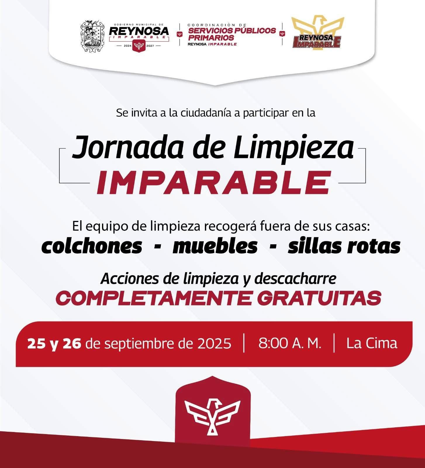 El Gobierno de #Reynosa que encabeza Carlos Peña Ortiz invita a todos los vecinos de la colonia La Cima a sumarse al Programa de Limpieza “Reynosa Imparable”.