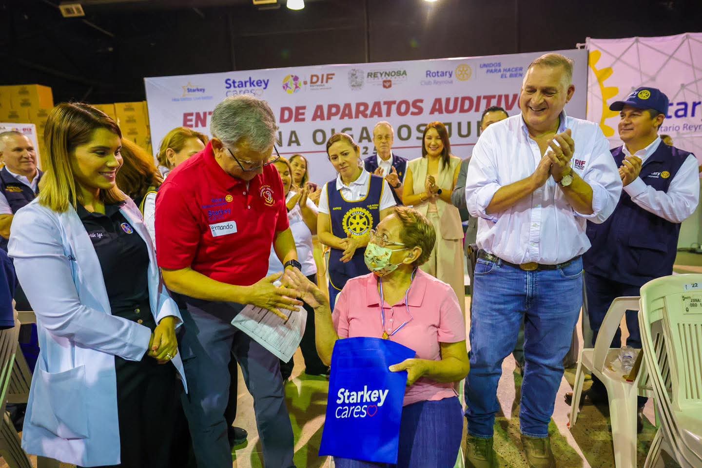 El Alcalde, Carlos Peña Ortiz, culminó con éxito la campaña “Oigamos Juntos”, con la entrega de 300 aparatos auditivos que mejoran la audición y elevan la calidad de vida de 150 personas en edades que van desde los 2 hasta los 94 años, resultado de la suma de esfuerzos a través del Sistema DIF-Reynosa que preside el Lic. Carlos Luis Peña Garza, en conjunto con el Club Rotario Reynosa y la Asociación Starkey.