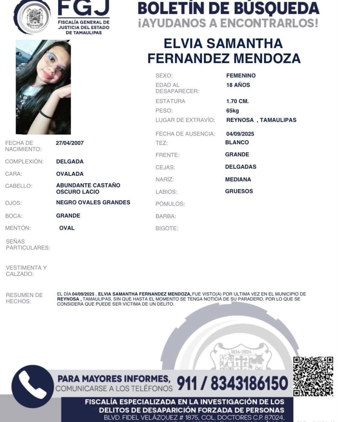 La desaparición de tres hermanos en Reynosa ha generado alarma y solidaridad entre la comunidad fronteriza. Se trata de Elvia Samantha Fernández Mendoza, de 18 años; María Celeste Ortiz Mendoza, de 14; y José Manuel Ortiz Mendoza, de 13, quienes fueron sustraídos de su vivienda en la colonia Ferrocarril el pasado 4 de septiembre.