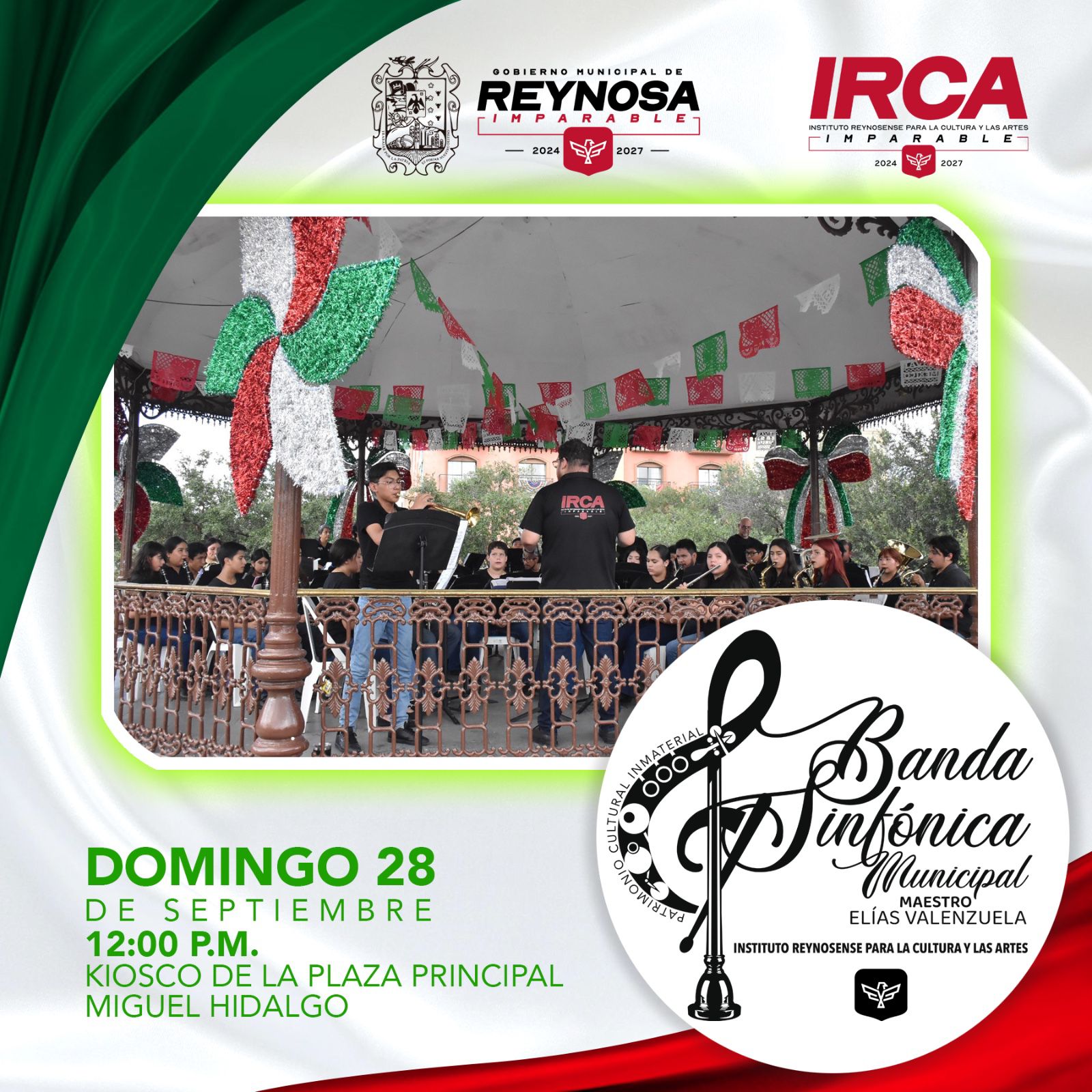 Atendiendo las instrucciones del Alcalde Carlos Peña Ortiz, el Instituto Reynosense para la Cultura y las Artes presenta este domingo 28 de septiembre su agenda artística en plazas públicas de la ciudad.