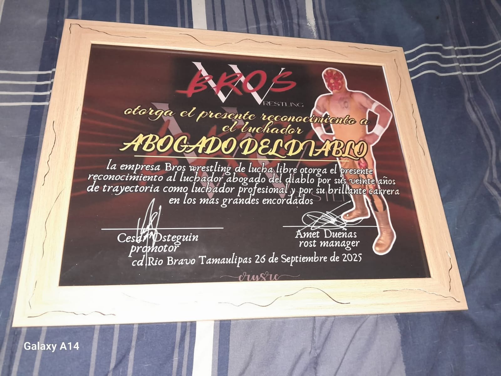 En una noche cargada de emoción y nostalgia, la empresa de lucha libre BROS Wrestling, encabezada por César Osteguin y su Roster Manager, Amet Dueñas “BG”, junto con la Unión de Luchadores de Río Bravo que dirige Miguelito Cruz, rindieron un merecido homenaje a uno de los personajes más emblemáticos de los cuadriláteros: el “Abogado del Diablo”, interpretado por el Licenciado César Hugo Flores Peña.