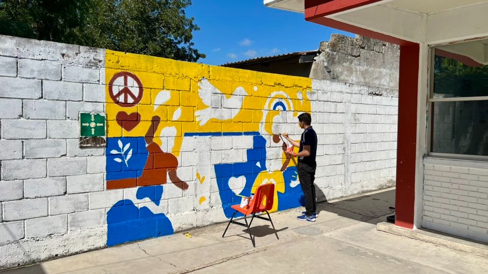 Gustavo Díaz Ordaz, Tam.- El Coordinador Regional del INJUVE Tamaulipas Ing. Irving de Jesús Treviño Mendoza, encabezó en el Cobat 09 “Dr. Ramiro Iglesias Leal”, la realización de un mural como parte de la Segunda Jornada Nacional de Tequios y Murales por la Paz y Contra las Adicciones, contando con el apoyo del Gobierno Municipal 2024-2027 que preside la Alcaldesa Nataly García Díaz.