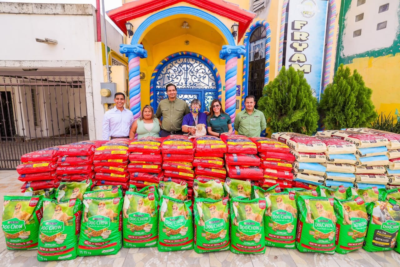 Conmemorando el Día Internacional de los Animales, el Presidente Municipal Carlos Peña Ortiz entregó una donación de más de 2.5 toneladas de alimento para perros y gatos a la Fundación Rescate y Adopción de Mascotas, FRYAM.