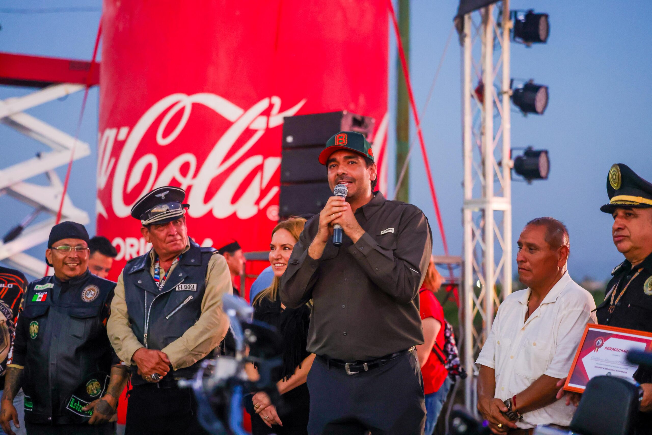 Junto con Reynaldo Santana, presidente de la Confederación de Autos Unidos por Tamaulipas, el Alcalde y la Coordinadora de Turismo y Comercio, Sandra Elizabeth Garza Faz, hicieron un recorrido para saludar a los participantes de la concentración, quienes previamente realizaron una rodada por la ciudad, para luego entregar un reconocimiento al Presidente Municipal por su apoyo.