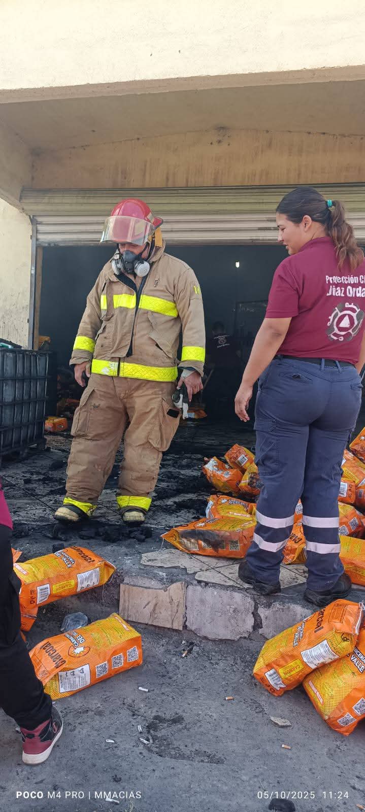 DÍAZ ORDAZ, TAM. – Elementos de Protección Civil y Bomberos atendieron este domingo un incendio registrado en una bodega ubicada en el poblado Valadeces, donde se desplegó de inmediato un operativo para controlar las llamas y evitar su propagación a estructuras cercanas.