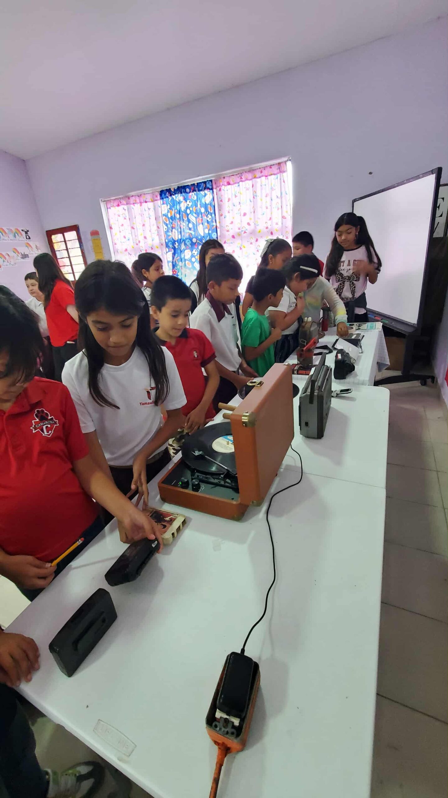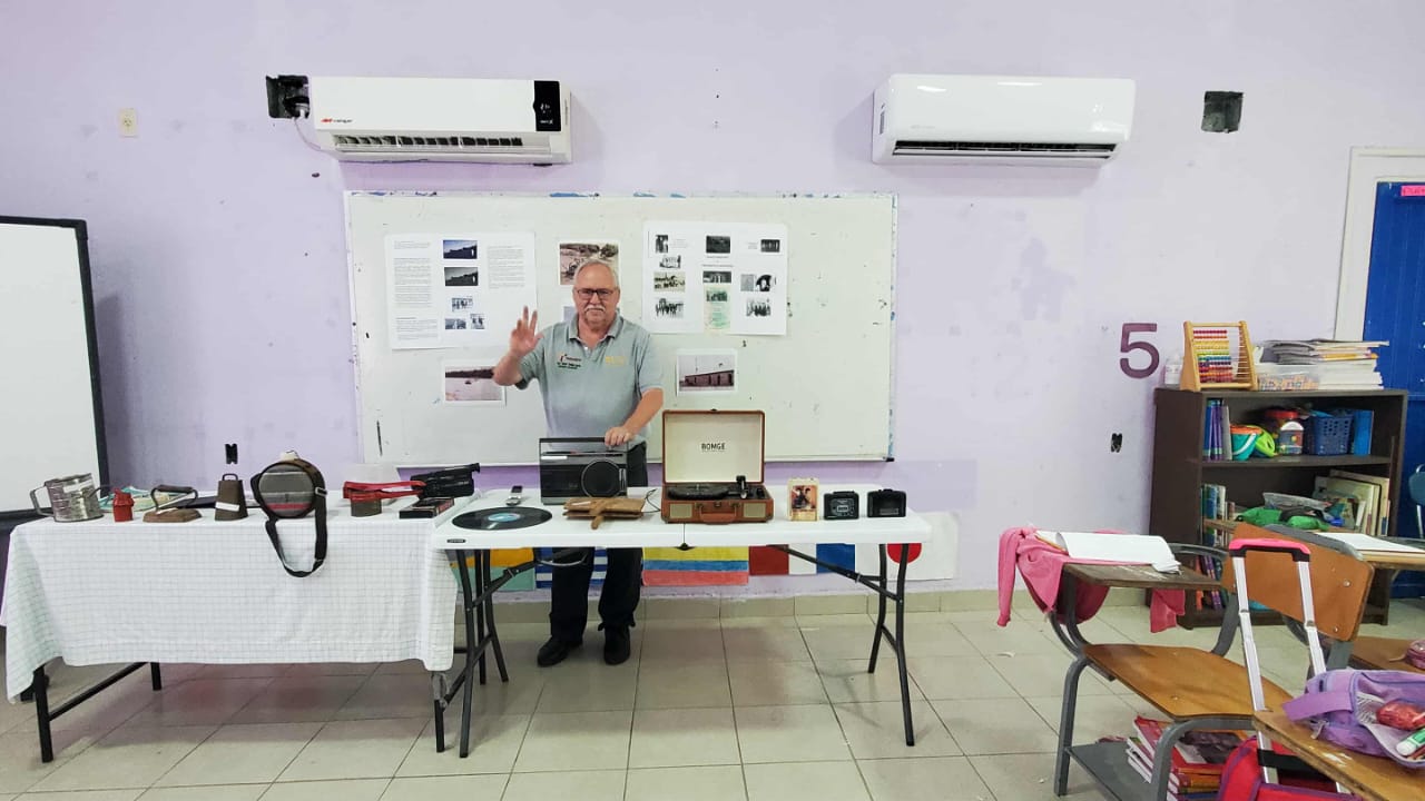 Durante las visitas escolares, se realiza una exposición itinerante de objetos y aparatos históricos, acompañada de explicaciones claras y amenas sobre su uso y relevancia en distintas épocas.