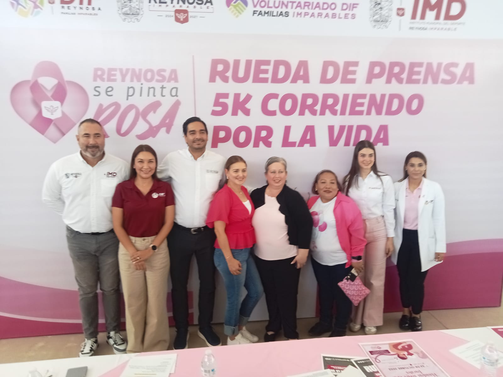 El Alcalde de Reynosa, Carlos Peña Ortiz, encabezó este lunes una conferencia de prensa en las instalaciones del Sistema DIF Municipal, donde, junto con la directora general del organismo, Gaby Garza, la presidenta del voluntariado, Alejandra Garza, y el director del Instituto Municipal del Deporte, Saúl Soto Castro, dio a conocer el arranque de las actividades del Mes Rosa, dedicado a la lucha contra el cáncer de mama.