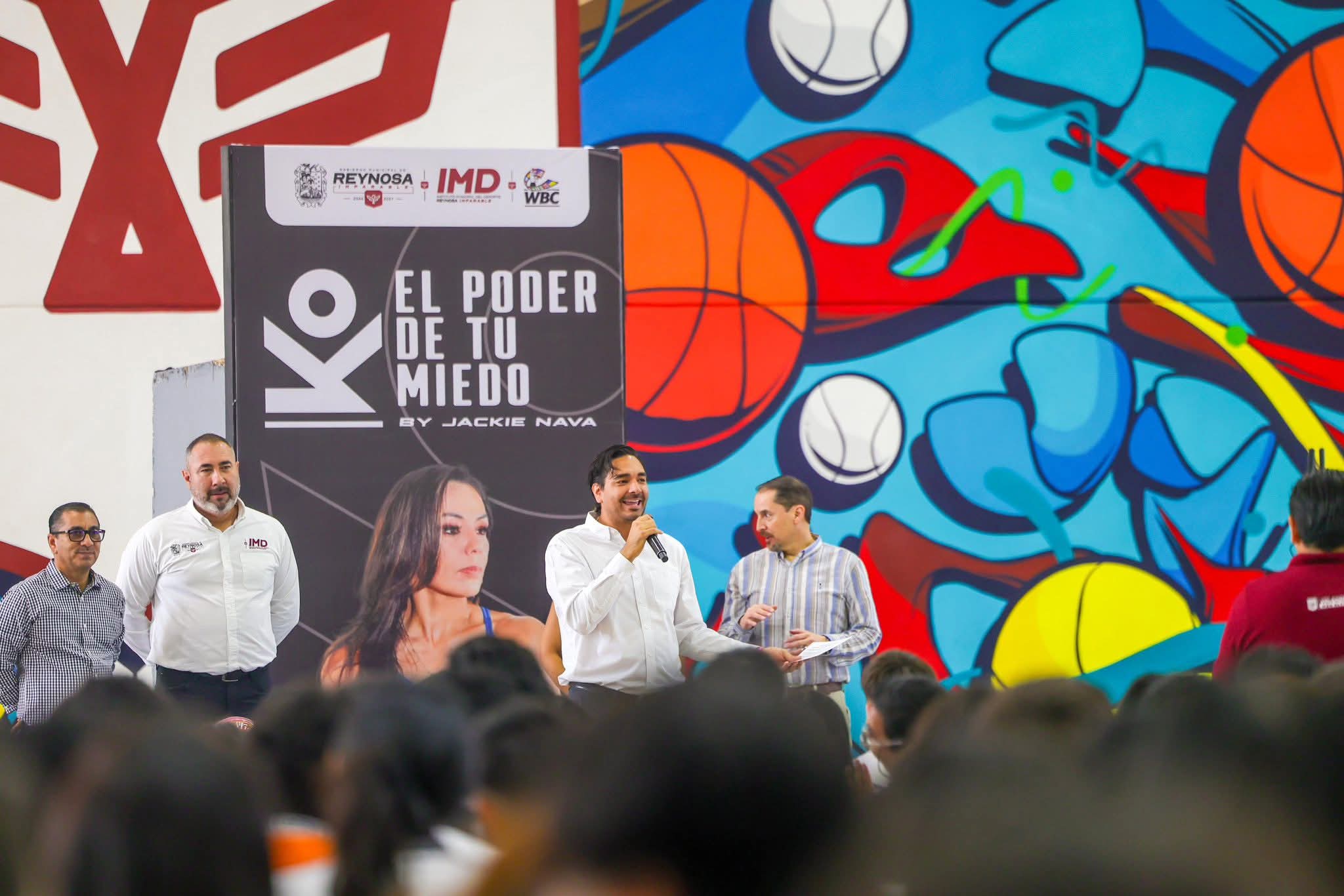 Con un mensaje de motivación, superación y esperanza, la campeona mundial de boxeo Jackie Nava, conocida como “La Princesa Azteca”, inspiró a cientos de jóvenes durante la conferencia “El Poder de tu Miedo”, encabezada por el Alcalde Carlos Peña Ortiz, la mañana de este martes en el Polideportivo de Reynosa.