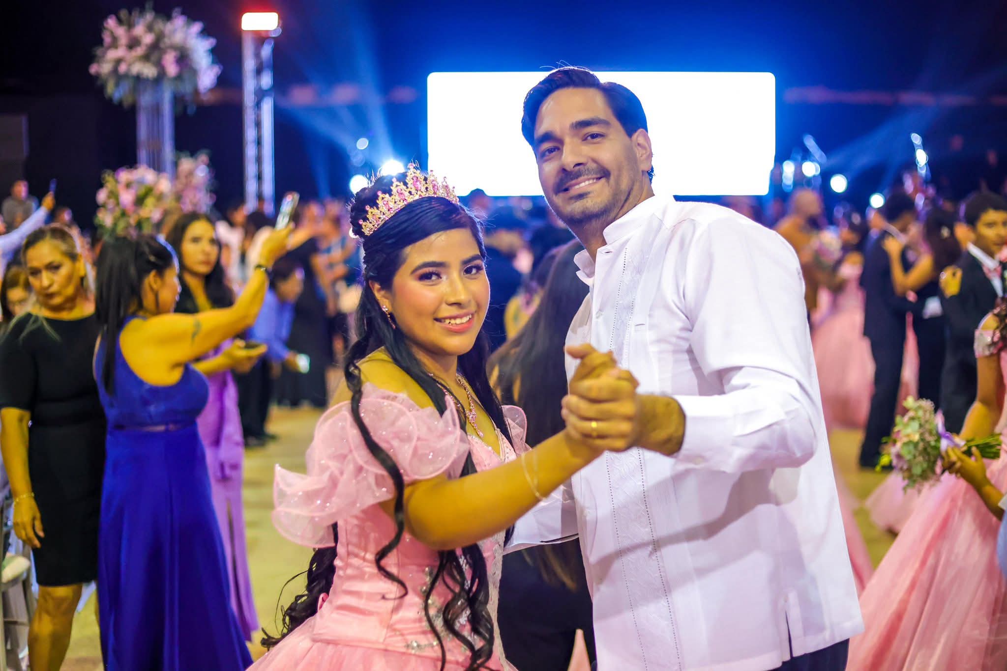 «Esta noche es muy importante, aquí tenemos el futuro de nuestro país, por eso siempre tenemos que luchar para que a ellas y también a los muchachos les vaya bien, estoy seguro que juntos vamos a construir ese país que queremos y anhelamos», dijo el Alcalde a las 50 señoritas y 32 jóvenes festejados, en uno de los momentos más importantes de sus vidas.