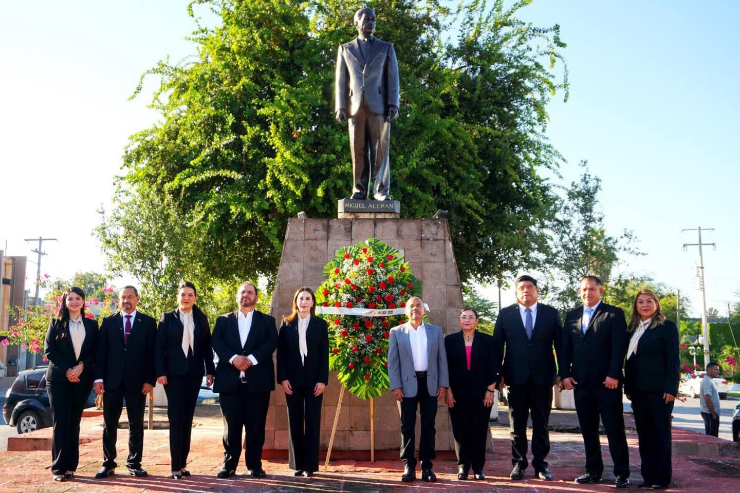 MIGUEL ALEMÁN, TAM. – En el 75 Aniversario de Emancipación Política de Miguel Alemán, el Alcalde Biol. Ramiro Cortez Barrera, encabezó la colocación de una ofrenda floral y las guardias de honor al pie del Monumento del Presidente de México, Miguel Alemán Valdés, en cuyo mandato se impulsó la lucha por un municipio libre y soberano, que se concretó el 11 de Octubre de 1950.