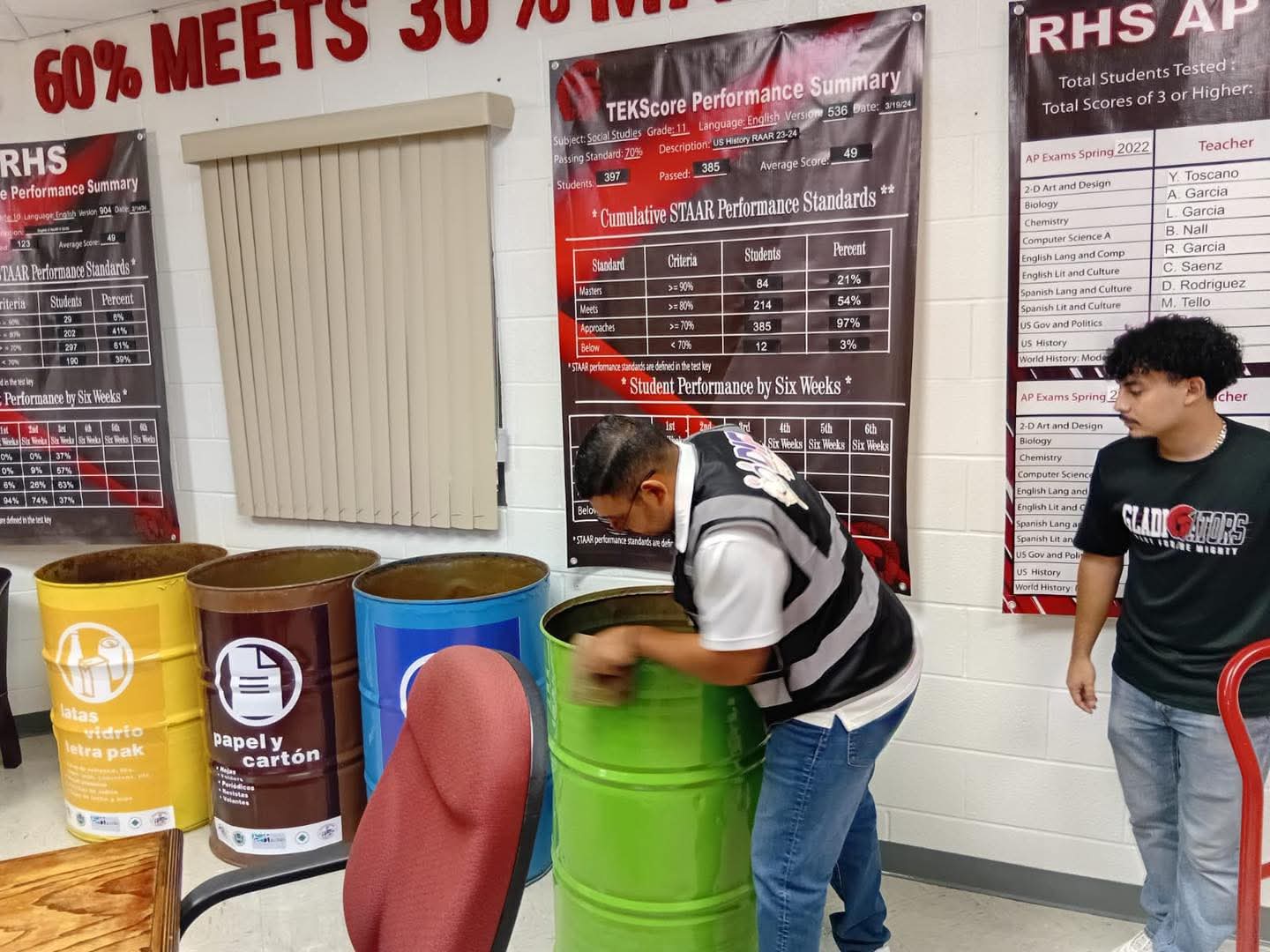 A través de esta iniciativa, aceptada por alumnos de la High School encabezados por Isabella Elizondo como presidenta del Consejo Estudiantil, se entregaron 2 juegos de contenedores como los que se han distribuido en los planteles educativos de Miguel Alemán, con los cuales los alumnos recolectan y clasifican los residuos inorgánicos como el papel, el plástico y el aluminio; así como lo residuos orgánicos para ser convertidos en composta.