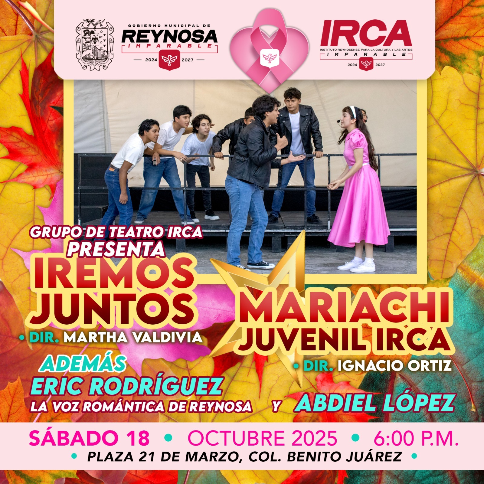 En la plaza 21 de Marzo, en la colonia Benito Juárez, se presentará a las 6:00 P. M. el performance “Iremos juntos”, inspirado en la obra musical “Vaselina”. Esta puesta en escena estará a cargo del Taller de Teatro del IRCA, dirigido por la Maestra Martha Valdivia Jiménez.