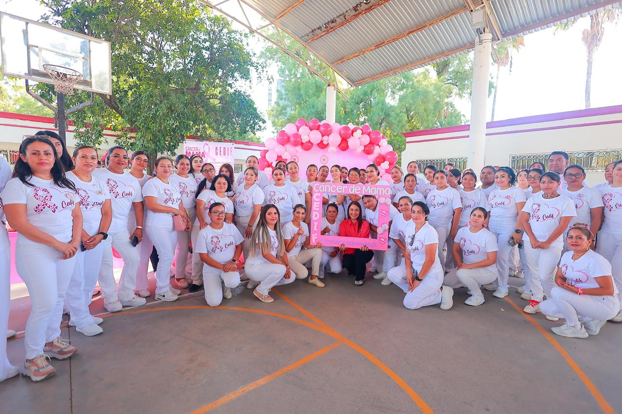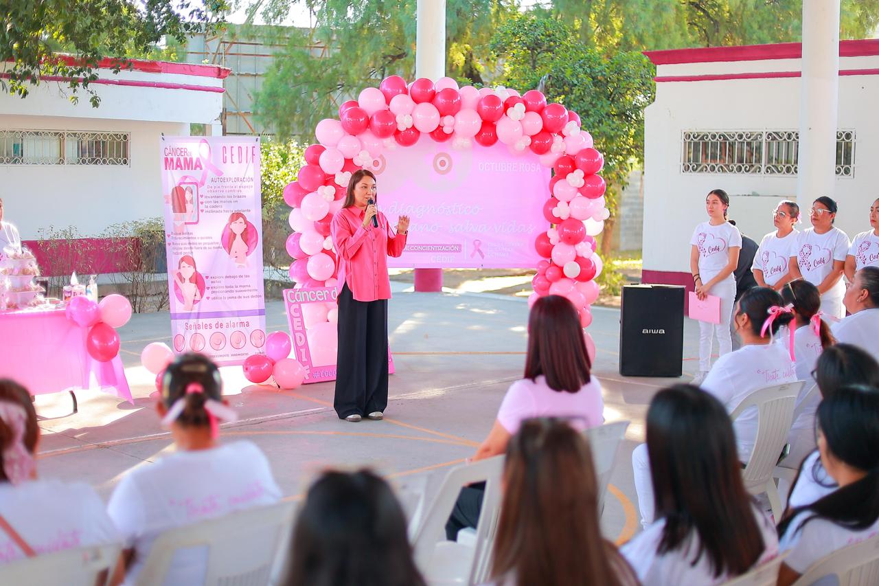 «Lo más importante es que te tienes que tocar, conocerte y si ves algo que no te gusta te puedes acercar a la Coordinación de Salud Integral de la Mujer que tenemos en el DIF para que te hagan tu estudio, hacemos mamografías todo el año», dijo en su mensaje la Directora del DIF Municipal. Asistieron al evento la coordinadora de CEDIF, Cynthia Martínez Hernández y alumnos del taller de enfermería.