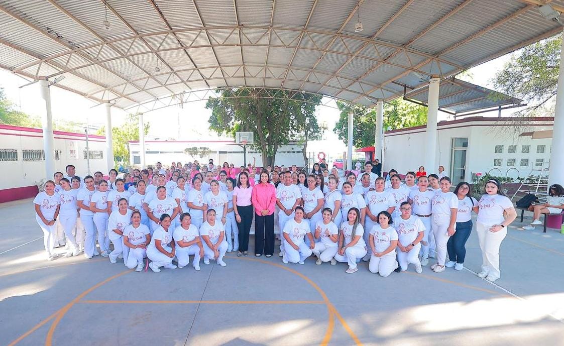 «Lo más importante es que te tienes que tocar, conocerte y si ves algo que no te gusta te puedes acercar a la Coordinación de Salud Integral de la Mujer que tenemos en el DIF para que te hagan tu estudio, hacemos mamografías todo el año», dijo en su mensaje la Directora del DIF Municipal. Asistieron al evento la coordinadora de CEDIF, Cynthia Martínez Hernández y alumnos del taller de enfermería.