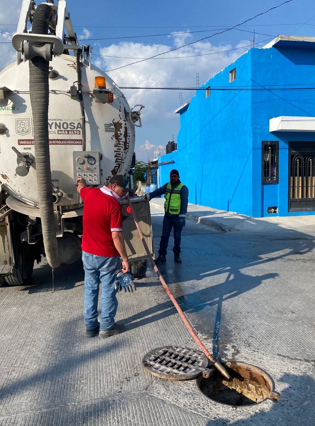 Por instrucciones del Presidente Municipal, Carlos Peña Ortiz, la Comisión Municipal de Agua Potable y Alcantarillado de Reynosa llevó a cabo trabajos de sondeo de la línea general de drenaje sanitario y limpieza de pozos sobre calle Cuarta, esquina con Benito Juárez, en la colonia Las Cumbres, con el objetivo de mantener bajos los niveles de agua en el sector y mejorar el funcionamiento de la red sanitaria.