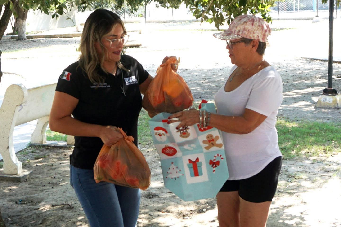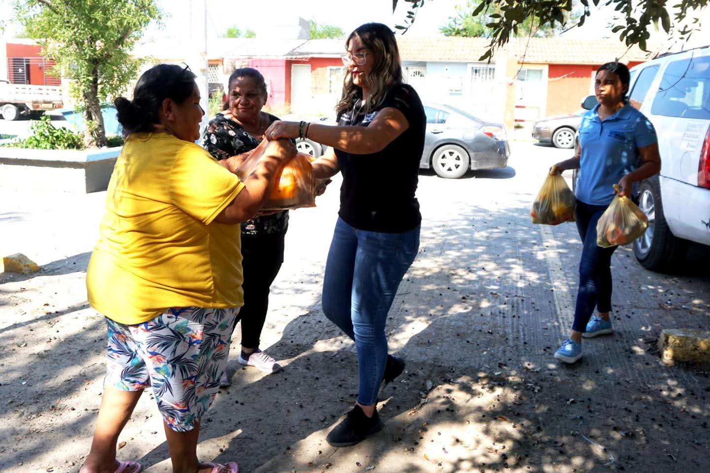 La entrega de despensas fue encabezada por la secretaria de Bienestar Social, Lic. Mayra Treviño Flores, quien estuvo acompañada por la directora de Programas Alimentarios, Lic. Brenda García Estrada, y por el director de Gestión Social, Ing. Jesús Veltrán Vázquez Castillo.