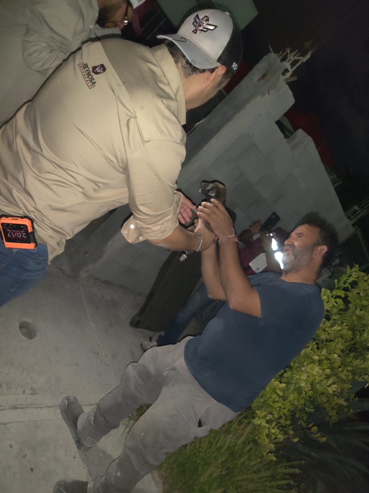 A vuelco de corazón y emoción en acción, inmediatamente Jaime, Eliseo, Elías, Noé, Melvin y Gerardo, se prepararon para apoyar el rescate, un cachorro atrapado en la desesperanza de su soledad, afortunado de que hubiese sido escuchado estaba por ser extraído de la tubería del drenaje sanitario gracias a la la coordinación de las dos dependencias.