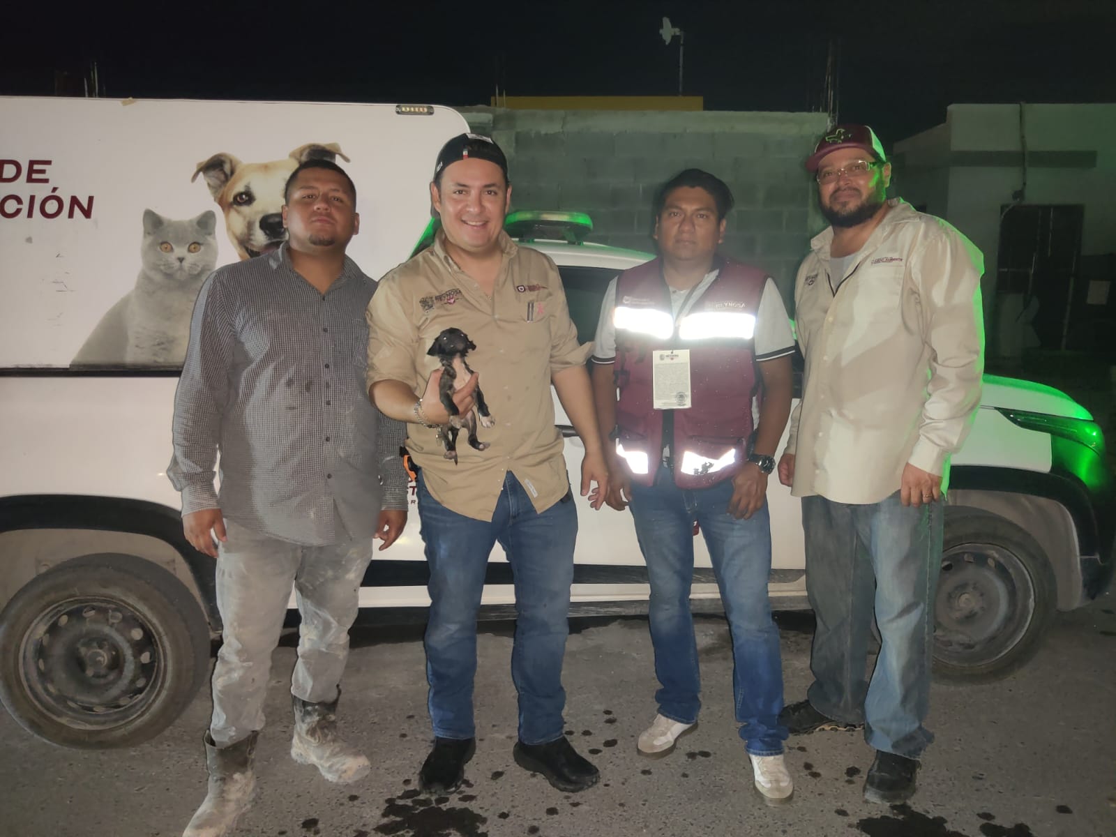 A vuelco de corazón y emoción en acción, inmediatamente Jaime, Eliseo, Elías, Noé, Melvin y Gerardo, se prepararon para apoyar el rescate, un cachorro atrapado en la desesperanza de su soledad, afortunado de que hubiese sido escuchado estaba por ser extraído de la tubería del drenaje sanitario gracias a la la coordinación de las dos dependencias.