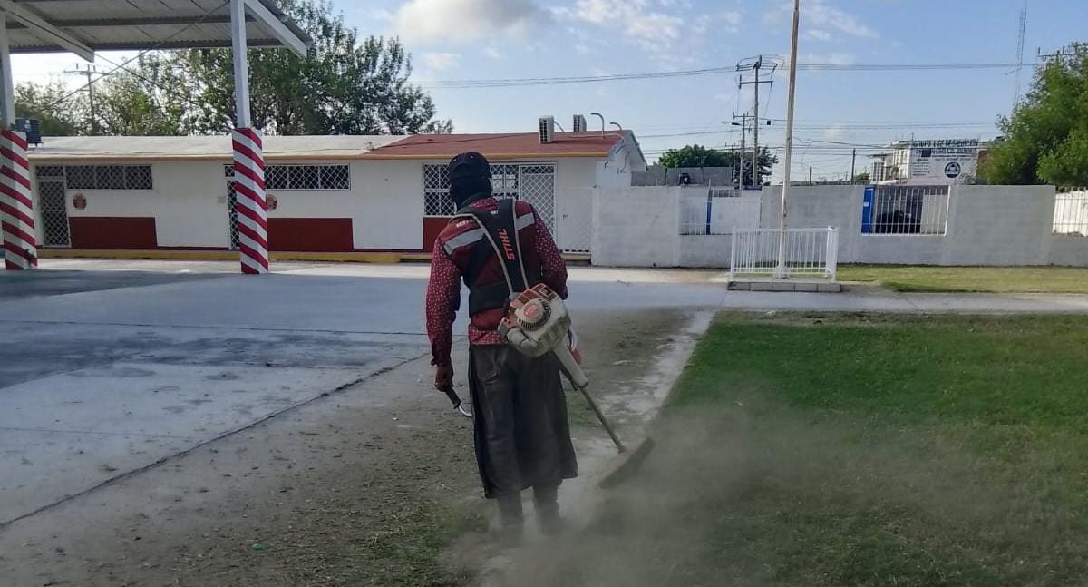 El Gobierno Municipal de Reynosa, encabezado por el Alcalde Carlos Peña Ortiz, llevó a cabo trabajos de saneamiento, limpieza y mantenimiento en la escuela primaria “Profesor Hermenegildo Castillo García”, ubicada en el fraccionamiento Villas de La Joya, con el objetivo de prevenir riesgos sanitarios y garantizar un entorno seguro para los estudiantes.