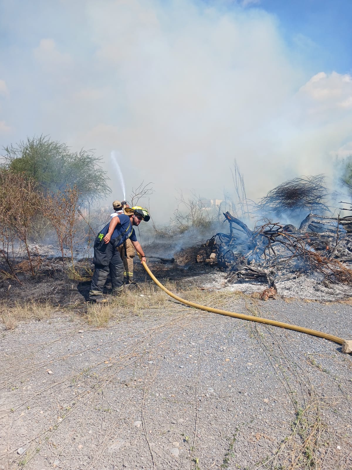 El primer incidente fue reportado a las 12:50 horas, cuando vecinos alertaron sobre un incendio de pastizal y monte en un área ubicada detrás del Auditorio Municipal “Eugenio Hernández”. Las unidades de emergencia acudieron de inmediato y lograron controlar el fuego a las 13:20 horas, evitando su propagación hacia zonas habitadas.