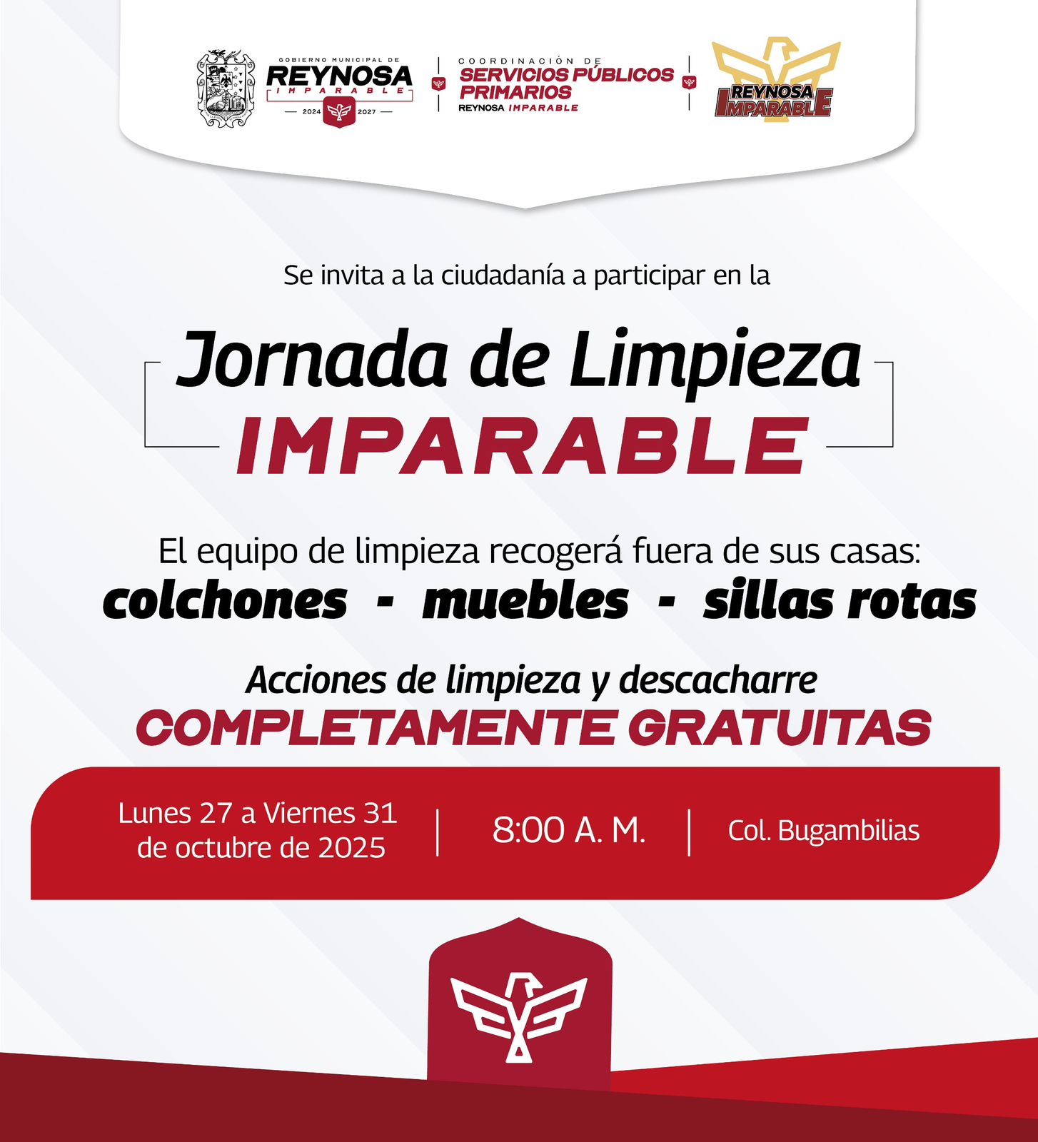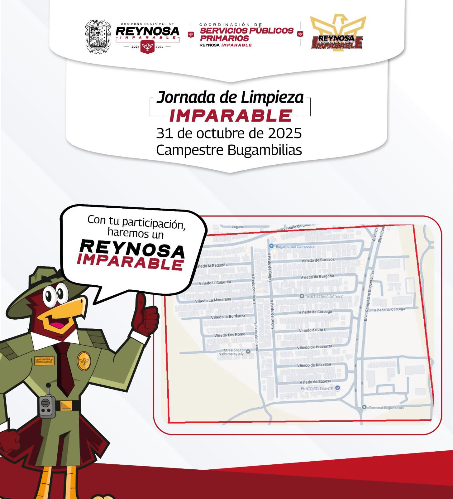 El Gobierno de Reynosa que encabeza Carlos Peña Ortiz, a través de la Coordinación General de Servicios Públicos Primarios, invita a la ciudadanía a participar en esta gran campaña de limpieza y descacharre en tu colonia 🧹