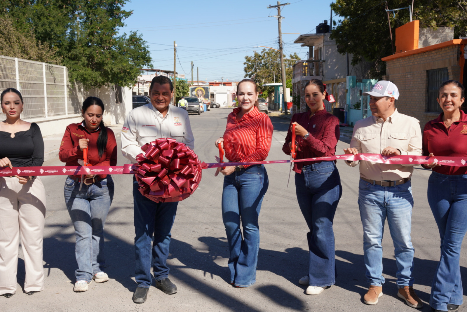 La alcaldesa entregó otro recarpeteo asfáltico en la calle Manuel Ávila Camacho, entre Jaumave y Agustín de Iturbide, en la colonia La Fe II, con una inversión de 1 millón 333 mil 666 pesos y una superficie de 4 mil metros cuadrados.
