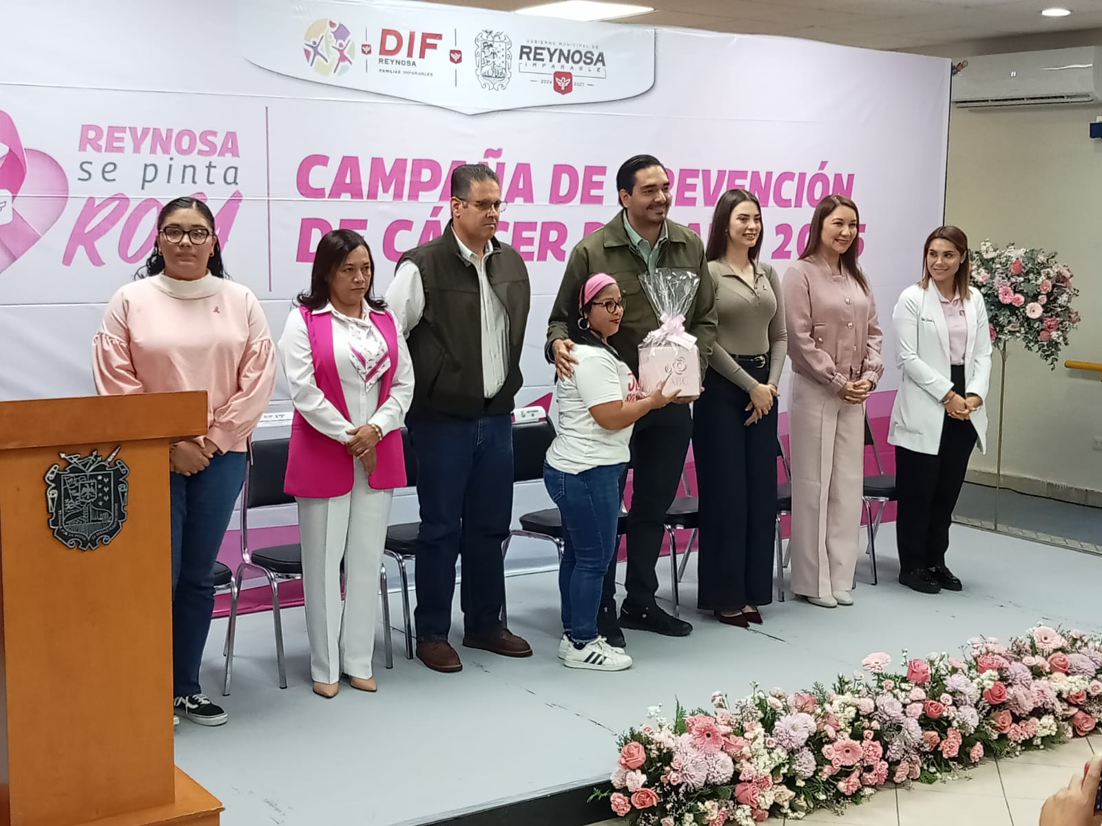 Asimismo, Garza invitó a las mujeres reynosenses a realizarse mastografías y revisiones médicas anuales, recordando que el DIF ofrece estudios gratuitos durante todo el año en el CRI, promoviendo la detección oportuna del cáncer de mama.