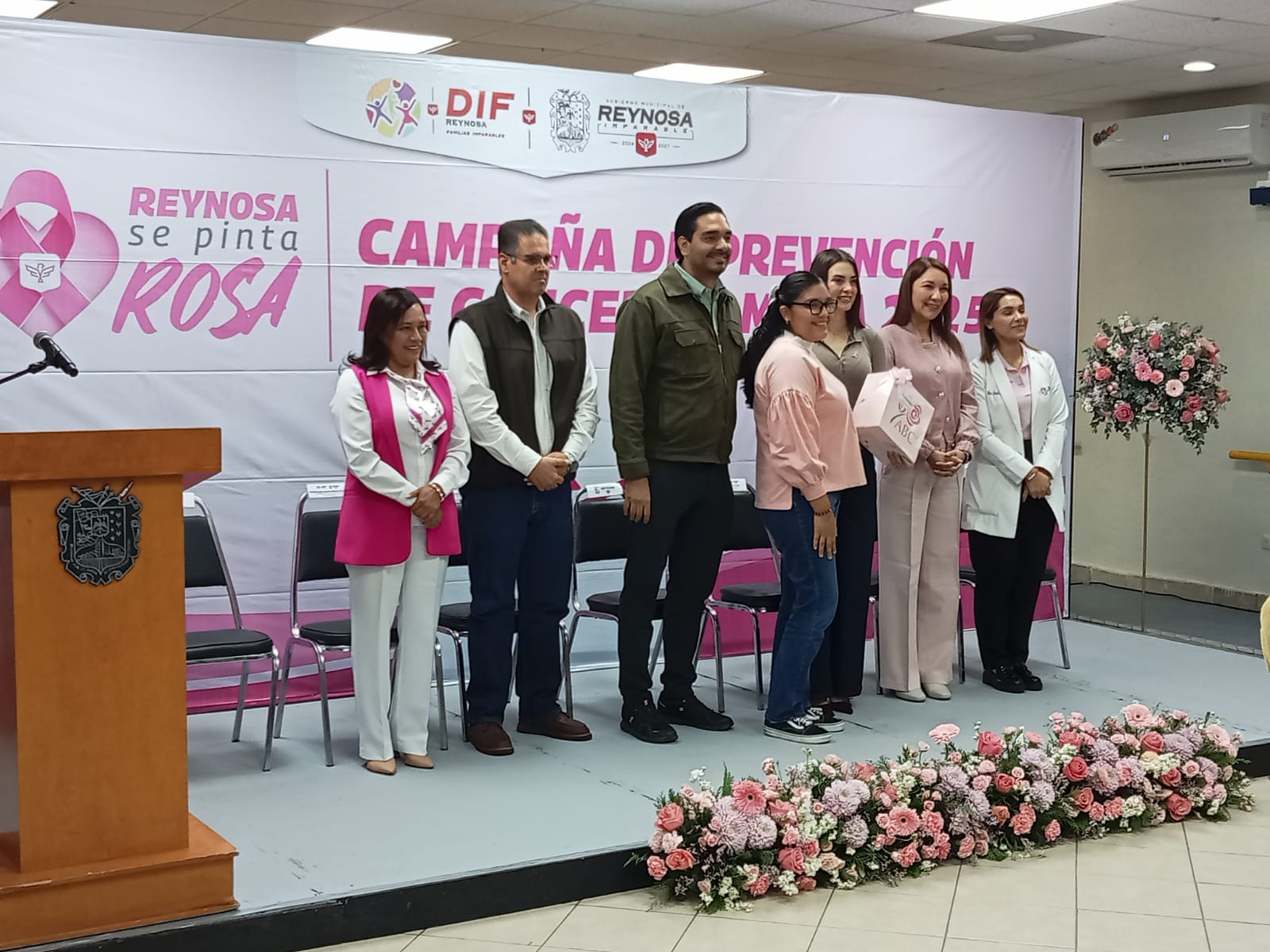 Asimismo, Garza invitó a las mujeres reynosenses a realizarse mastografías y revisiones médicas anuales, recordando que el DIF ofrece estudios gratuitos durante todo el año en el CRI, promoviendo la detección oportuna del cáncer de mama.