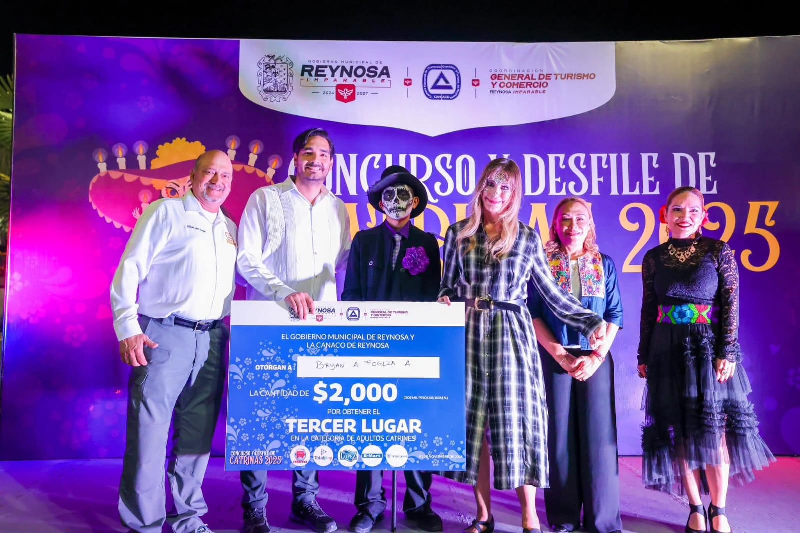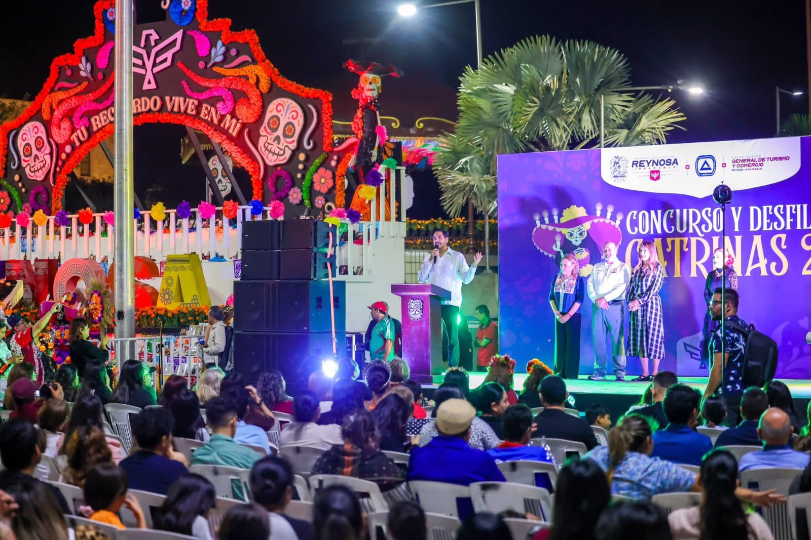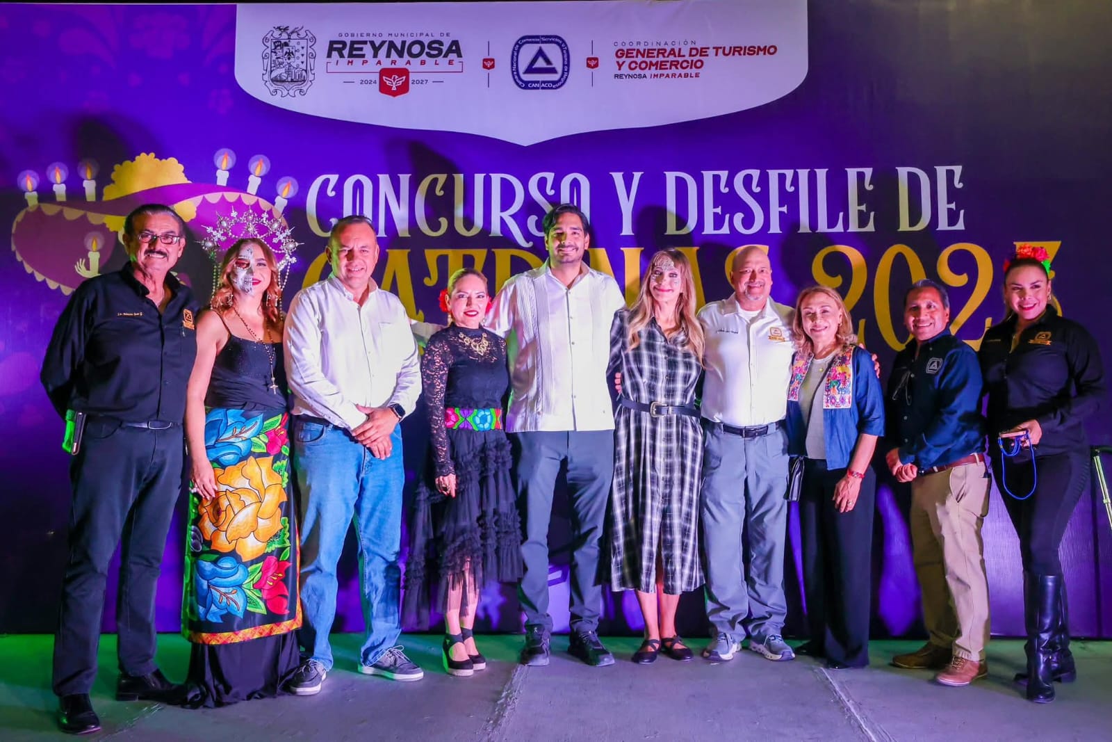 El Alcalde Carlos Peña Ortiz, junto con el líder de la Cámara de Comercio, Servicios y Turismo de Reynosa, CANACO, Gildardo López Hinojosa, acompañado también por la Senadora Maki Esther Ortiz Domínguez, presidió el Concurso y Desfile de Catrinas 2025, que celebró la extraordinaria herencia cultural mexicana, de tradiciones únicas, con un significado especial sobre el fin de la vida y la trascendencia del ser.