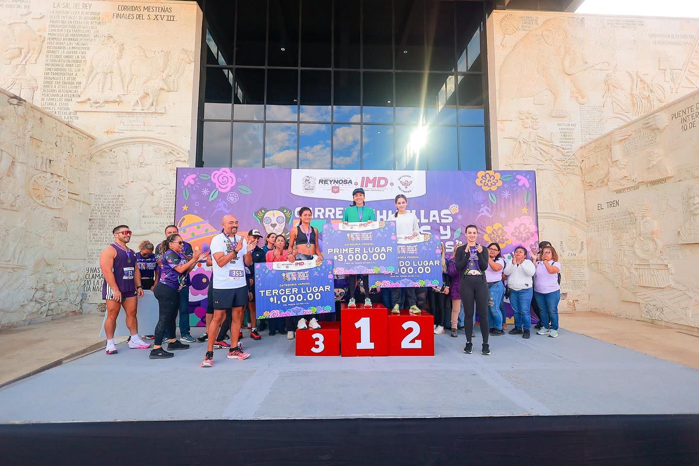 La Presidenta del Voluntariado DIF-Reynosa, Alejandra Yelitza Garza, en representación del Alcalde, felicitó a los competidores de la Carrera Huellas, Velas y Calaveras, que con total éxito fue celebrada este domingo con la participación de 600 corredores, que reunieron más de 10 toneladas de alimento para perros y gatos, contando con un importante donativo de Brandon Lara, Subdirector del Instituto Nacional de Pueblos Indígenas, quien participó en el evento.
