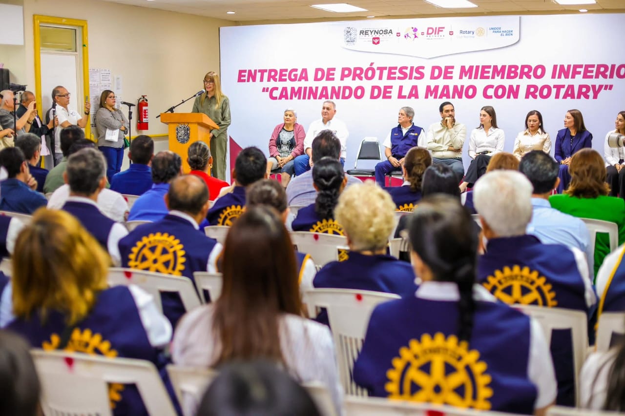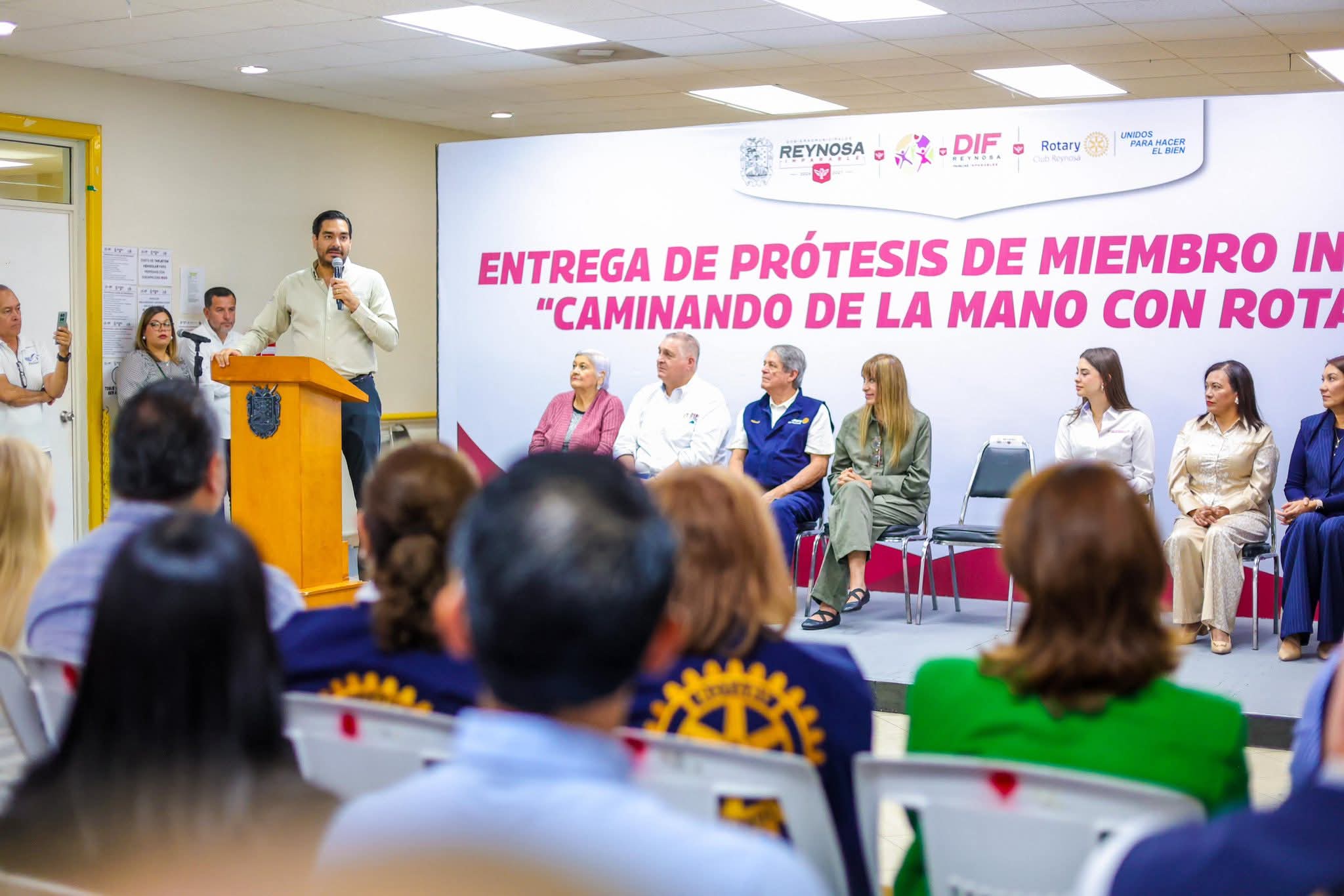 El Alcalde Carlos Peña Ortiz encabezó la entrega de prótesis inferiores a reynosenses que lo necesitaban, marcando el inicio de una nueva etapa en la vida de estas personas, un acto en el que estuvo acompañado por el Presidente del Club Rotario Reynosa, Marcos Olivares Olvera, por la Senadora Maki Esther Ortiz Domínguez; el Presidente del Patronato del DIF-Reynosa, Carlos Luis Peña Garza y por la Presidenta del Voluntariado DIF-Reynosa, Alejandra Yelitza Garza.