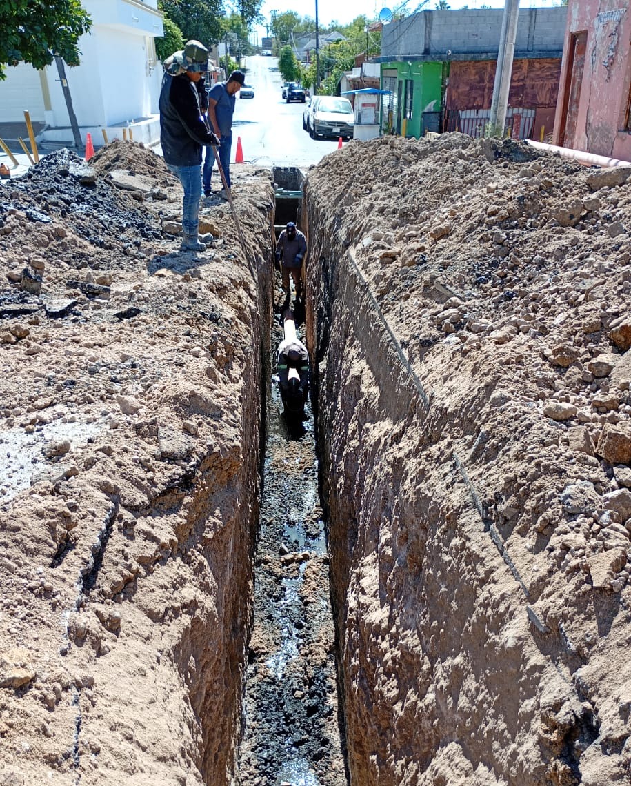 En estas acciones, el personal operativo del organismo realiza el reemplazo de tubería de PVC de 8 pulgadas de diámetro, con el propósito de mejorar el funcionamiento del sistema de drenaje sanitario y fortalecer la infraestructura hidráulica en este importante sector de la ciudad.