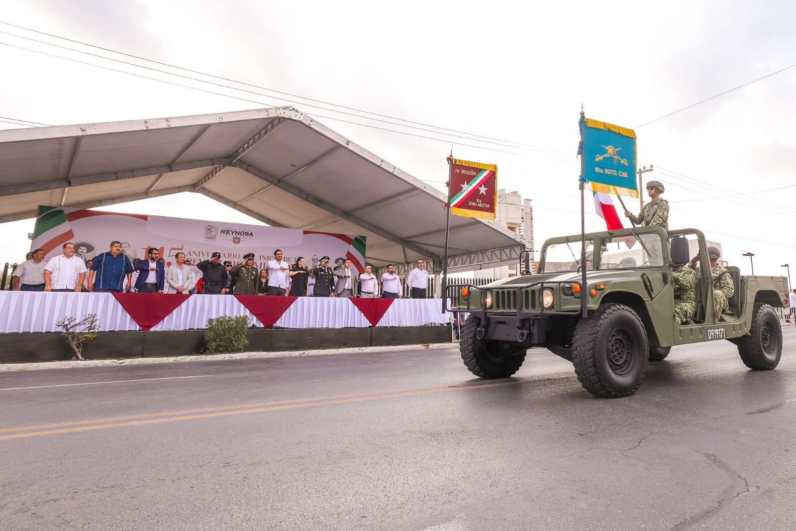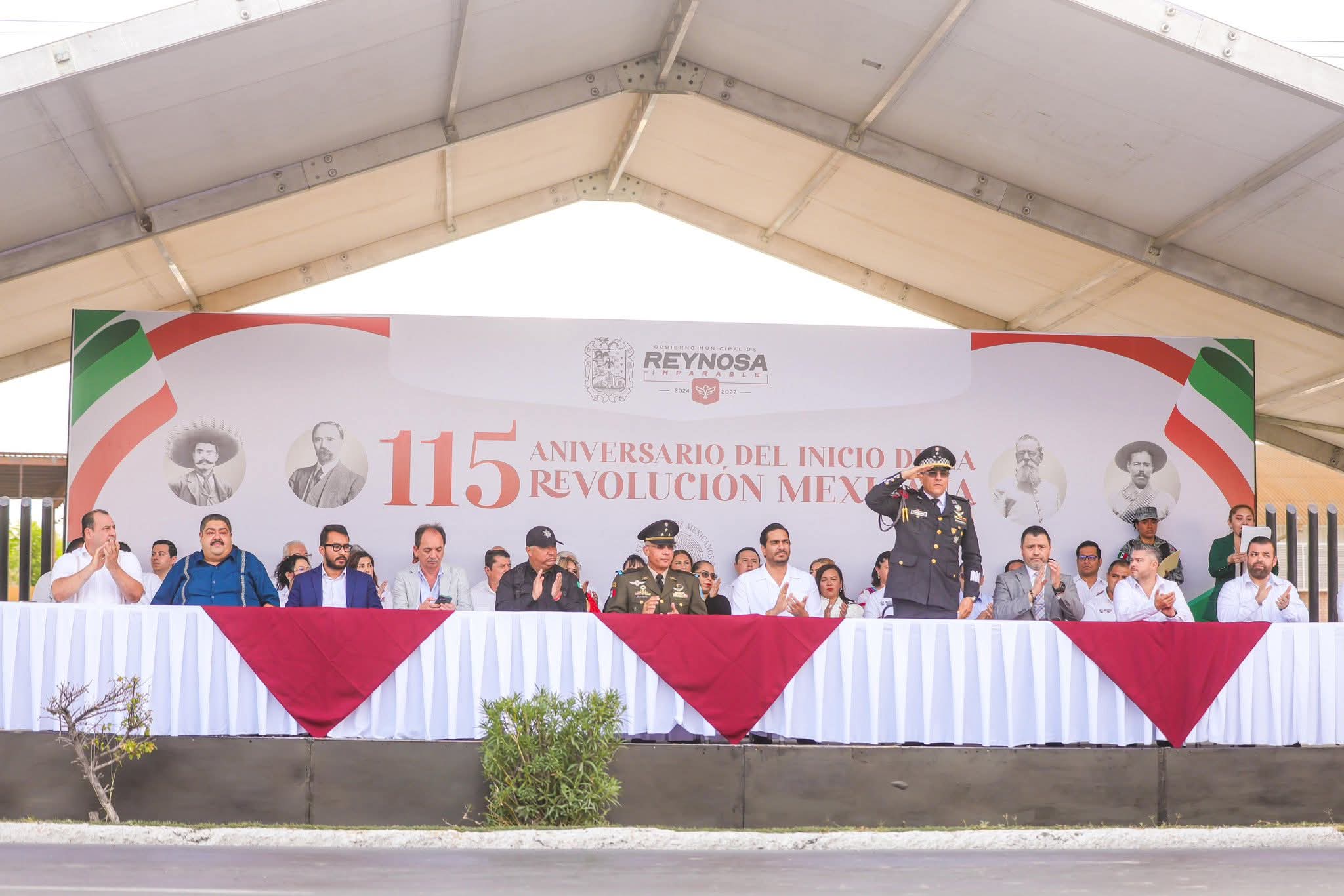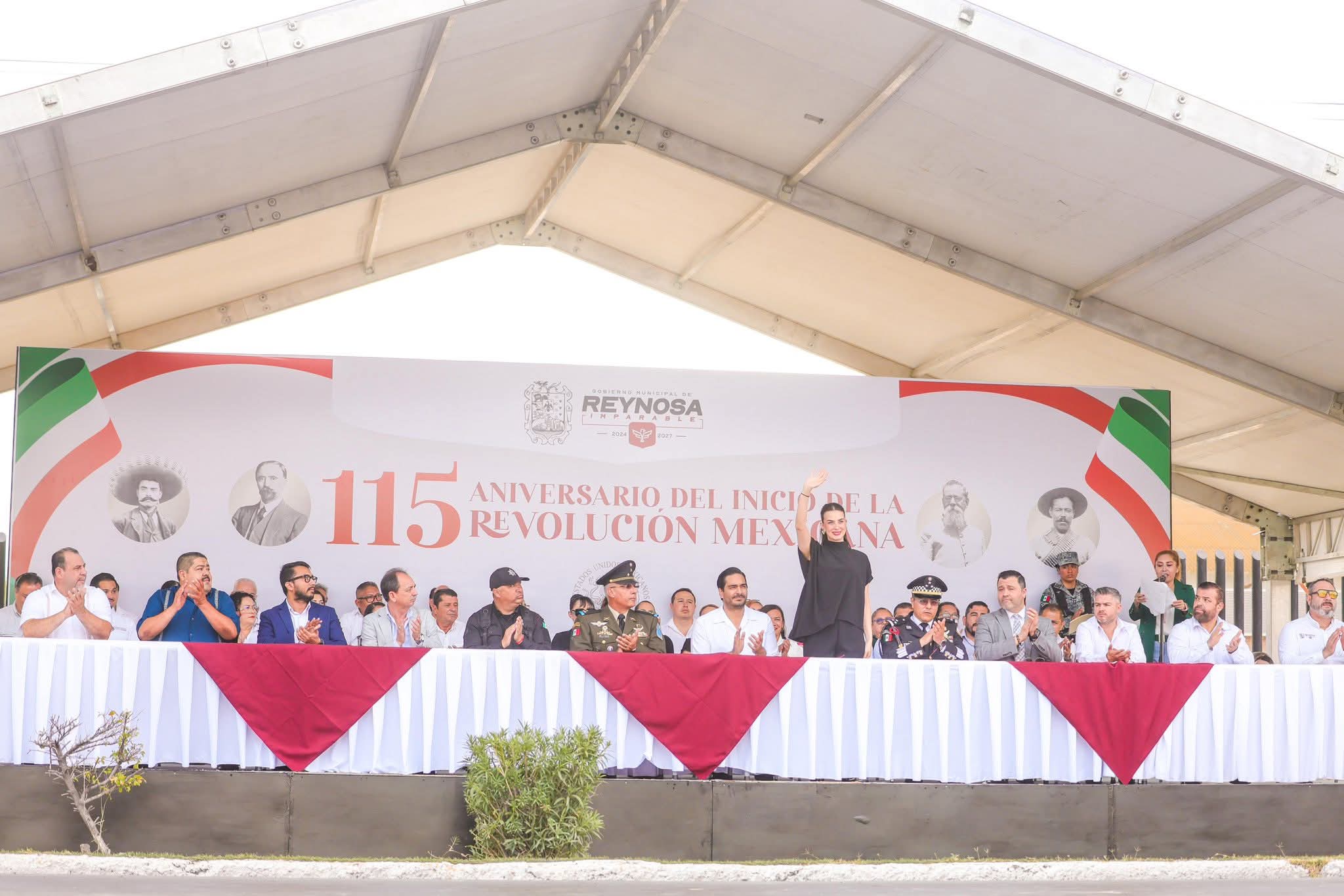 Los reynosenses disfrutaron este jueves 20 de noviembre el Desfile Conmemorativo del 115 Aniversario del Inicio de la Revolución Mexicana, con el Alcalde Carlos Peña Ortiz, su esposa Alejandra Yelitza Garza, y el Coronel de Caballería Marco Antonio de la Fuente Barragán, Comandante del Décimo Noveno Regimiento de Caballería Motorizado de la Octava Zona Militar.