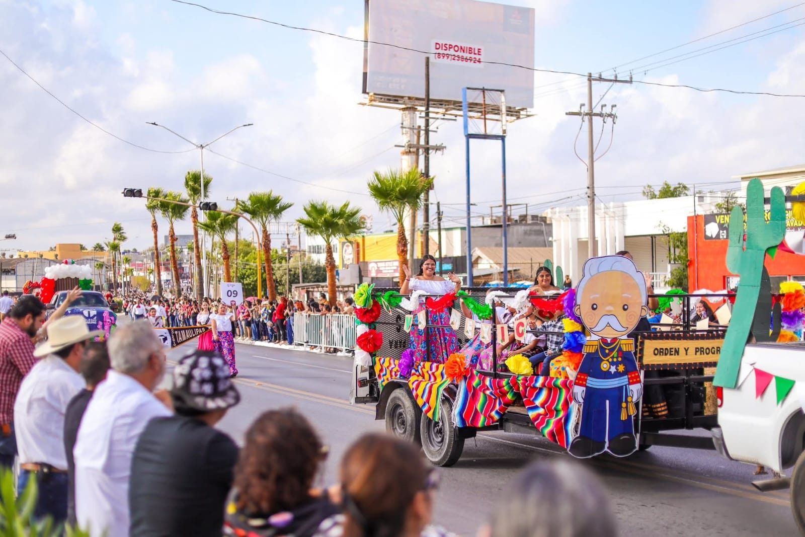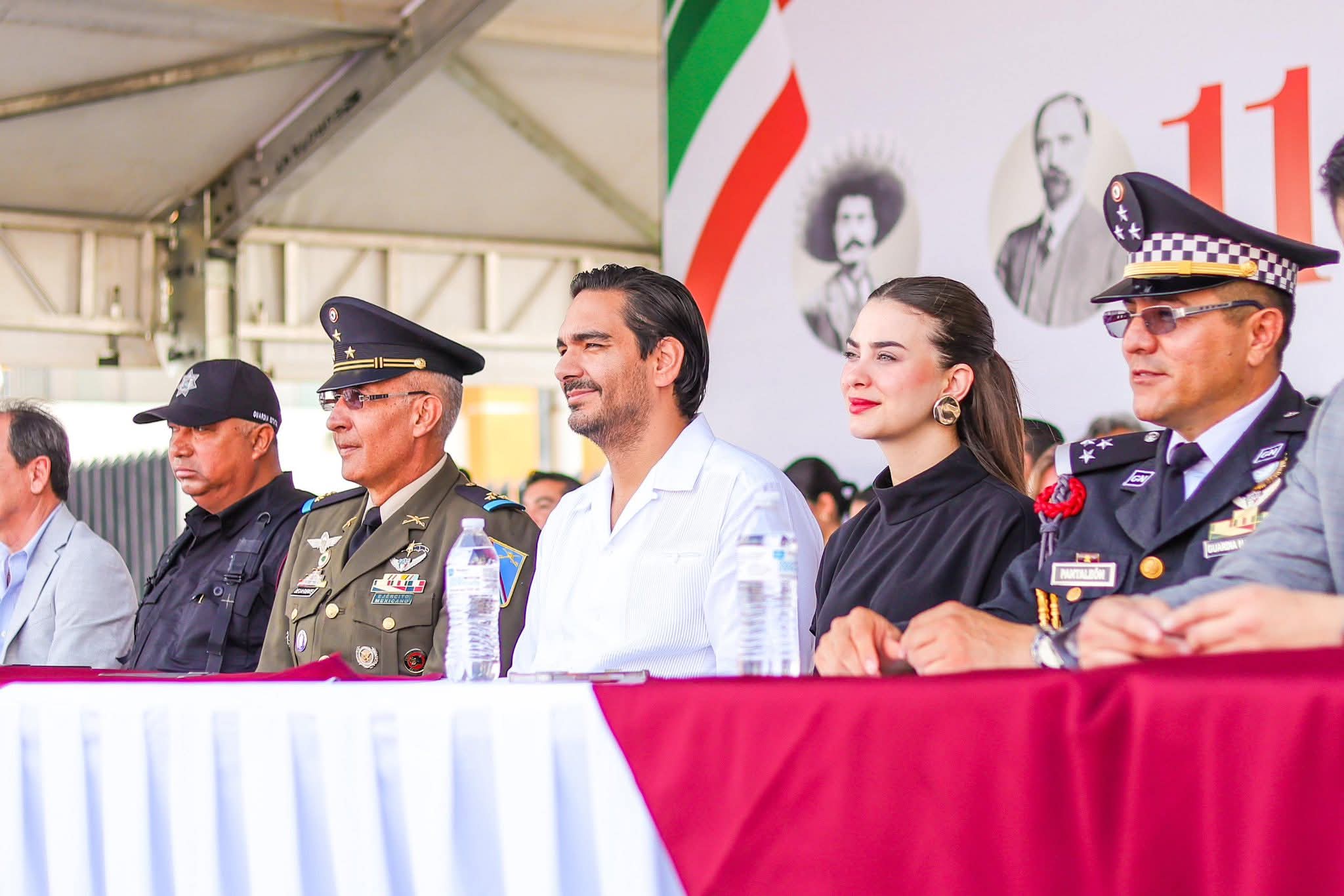 Con la participación de 35 contingentes, encabezados por el Ejército Mexicano, los asistentes apreciaron los vehículos y equipos tácticos de las Fuerzas Armadas, la Guardia Nacional y Guardia Estatal, y sobre todo los números artísticos y deportivos de las escuelas de la localidad.