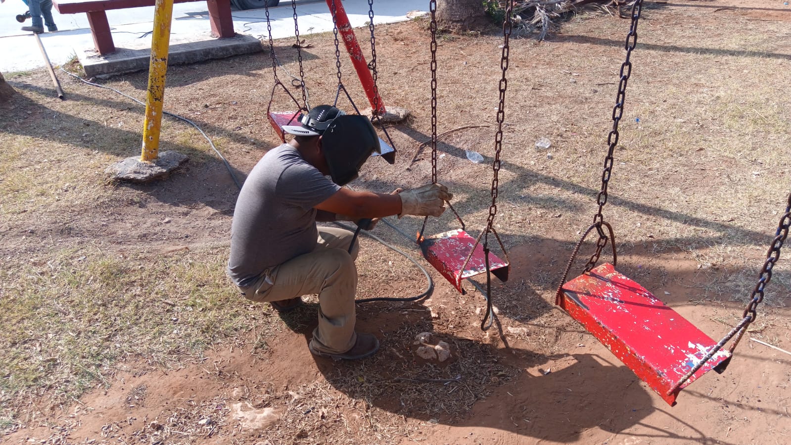 Como parte de estas labores, personal municipal llevó a cabo la reparación de los juegos infantiles en la plaza pública de la colonia Satélite, con el objetivo de ofrecer a niñas y niños un espacio más seguro, funcional y atractivo para su convivencia y recreación.