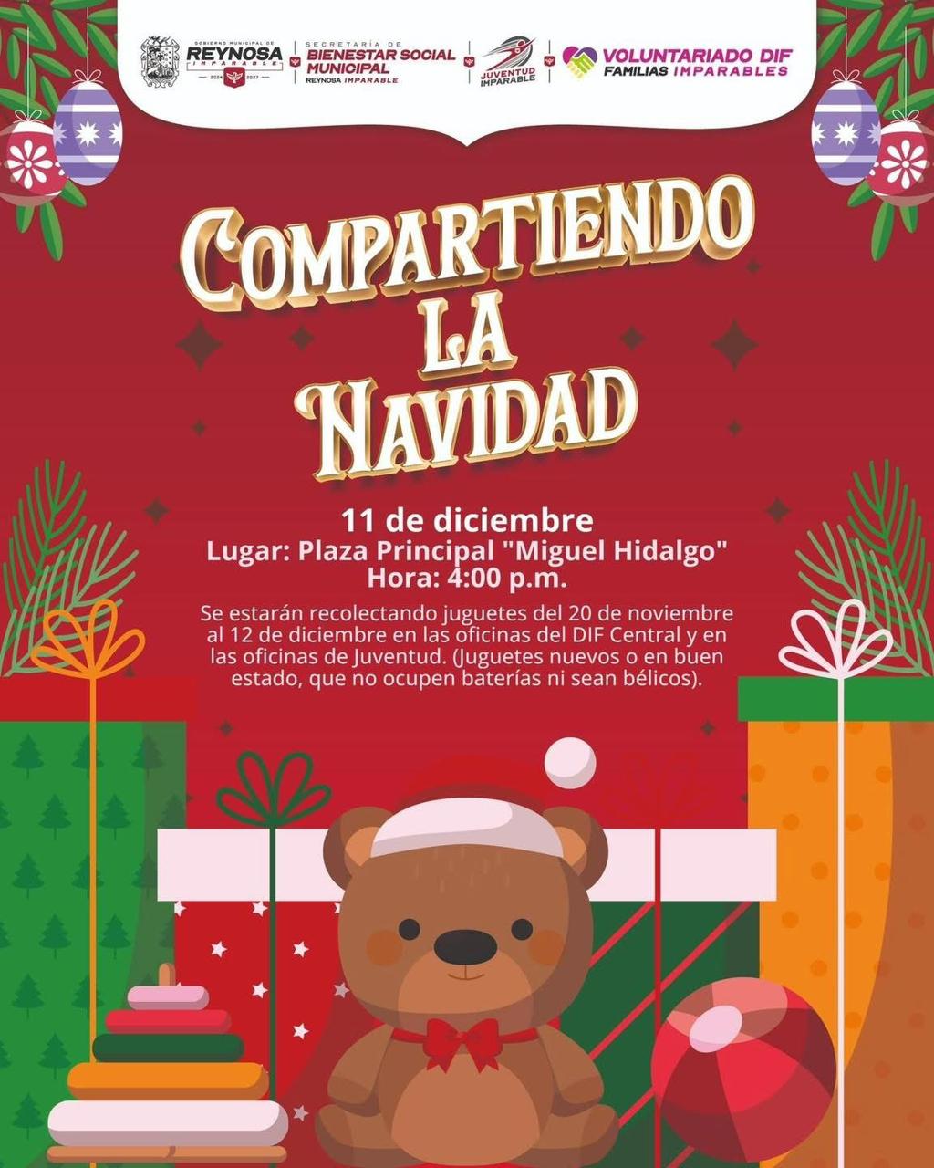 El Alcalde Carlos Peña Ortiz invita a sumarse a la colecta de juguetes organizada por Bienestar Social, Juventud y el Voluntariado del DIF Reynosa, para llevar sonrisas a las niñas y niños de nuestra ciudad.