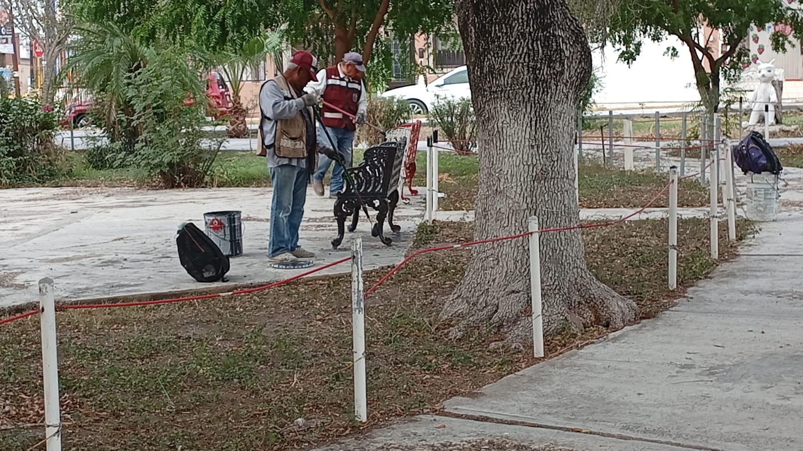 En la colonia Petrolera, cuadrillas municipales realizaron trabajos de limpieza general en la plaza pública, buscando que las familias puedan disfrutar del sitio con mayor comodidad y confianza. Como parte de estas labores, también se aplicó pintura anticorrosiva en color gris a las bancas metálicas, con el fin de prolongar su vida útil y protegerlas de los efectos de la corrosión.