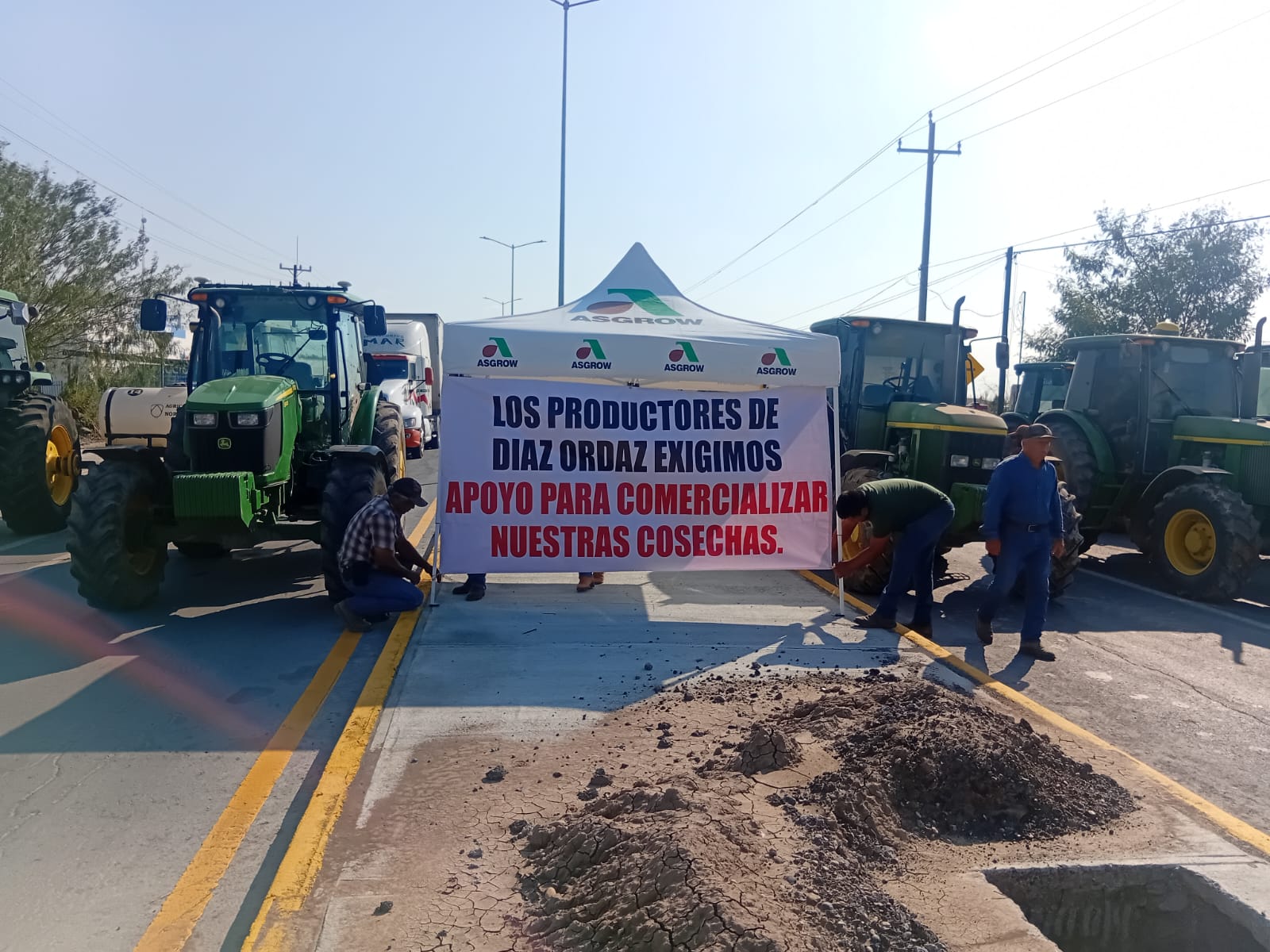 DÍAZ ORDAZ, TAM. – Agricultores de los municipios de la región ribereña se sumaron este lunes al paro nacional convocado por productores del campo y bloquearon la carretera a la altura del crucero principal de acceso al municipio, en protesta por la falta de apoyo de los gobiernos federal y estatal.