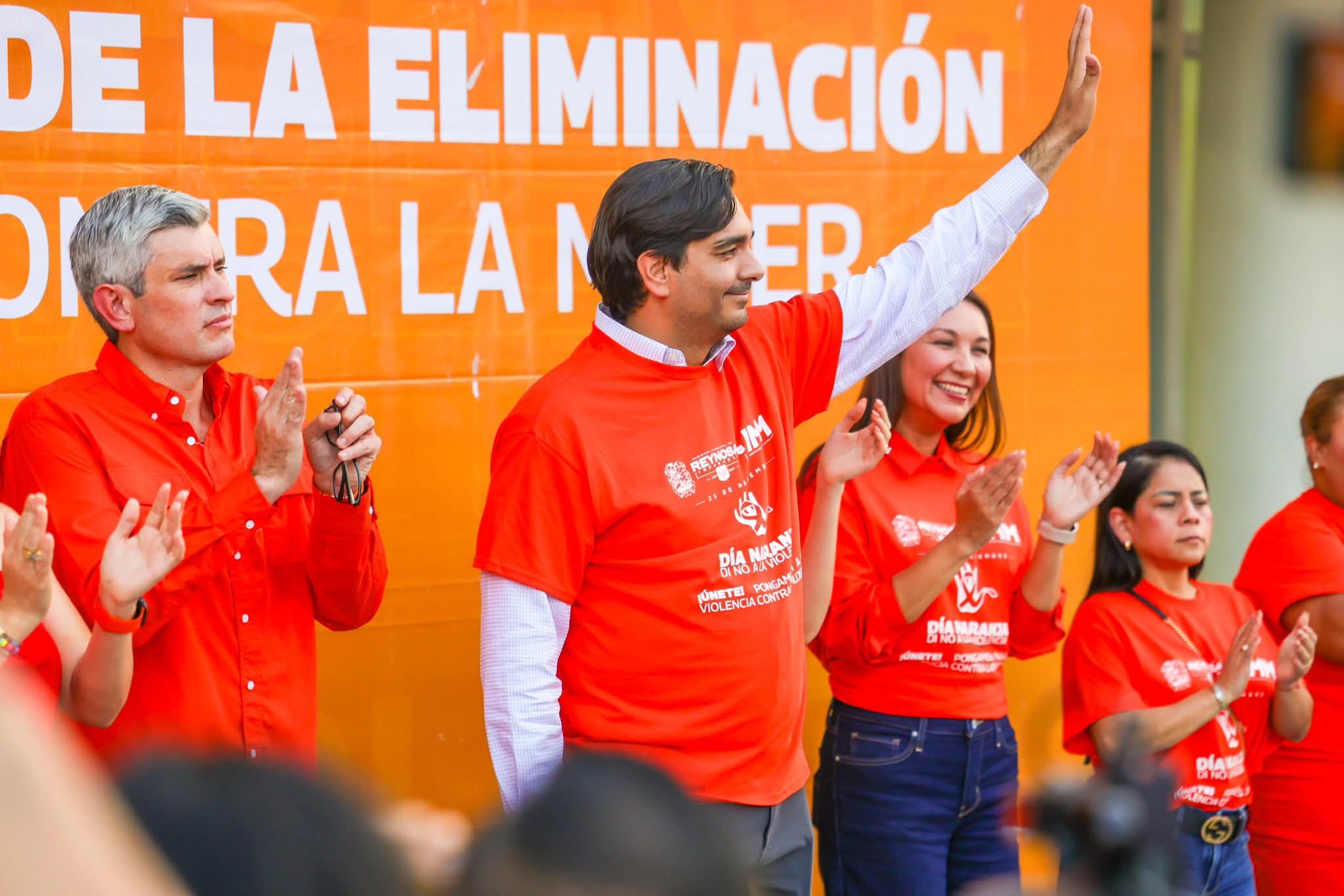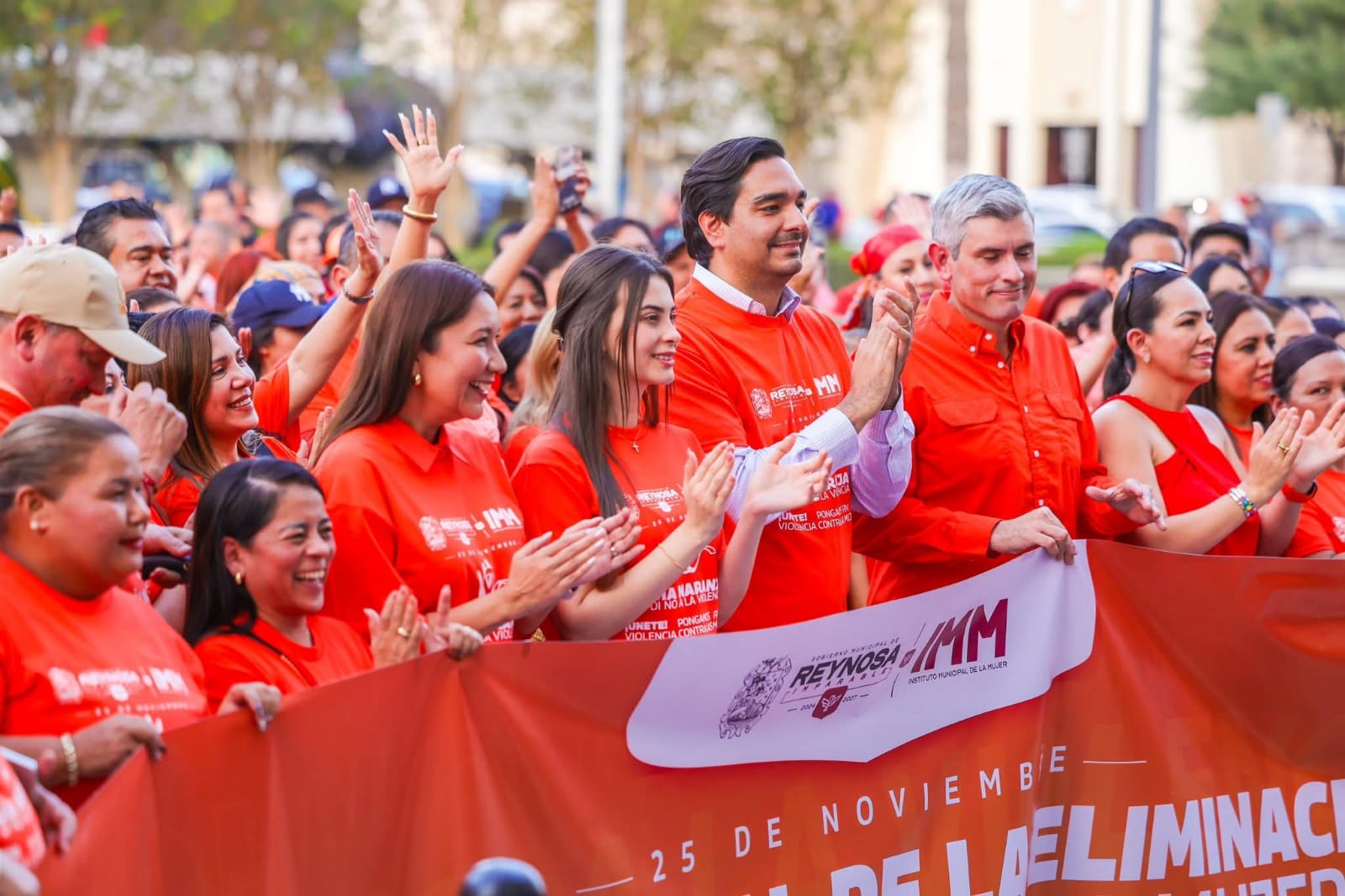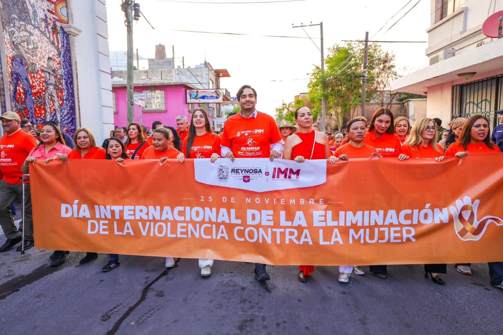 El Alcalde Carlos Peña Ortiz encabezó una emotiva caminata por el Día Internacional de la Eliminación de la Violencia contra la Mujer en Reynosa, acompañado por su esposa Alejandra Yelitza Garza, Presidenta del Voluntariado DIF-Reynosa; por la Directora del Instituto Municipal de la Mujer, Hidilberta Velázquez Mendoza y por cientos de mujeres.