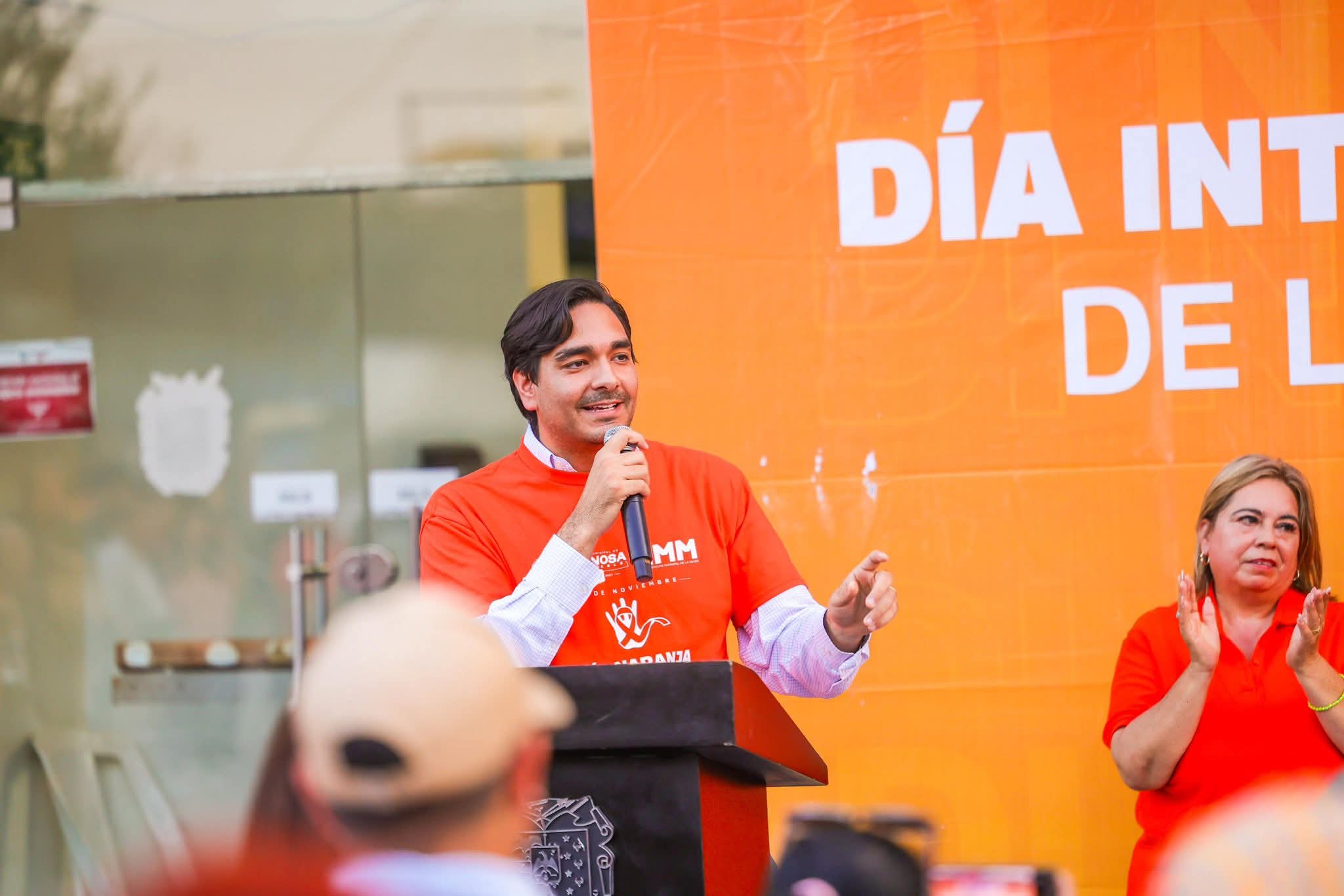 La Directora, en presencia funcionarias y funcionarios del Gobierno Municipal, Regidoras y Regidores, así como de mujeres valientes y comprometidas de la comunidad, emitió un mensaje este 25 de noviembre en la plaza principal Miguel Hidalgo: «esta fecha no solo nos invita a reflexionar, nos convoca a actuar, a transformar realidades, y a fortalecer nuestra comunidad; este color naranja que llevamos significa esperanza, es el color de la vida, de la fuerza, de la luz que ninguna violencia puede apagar».